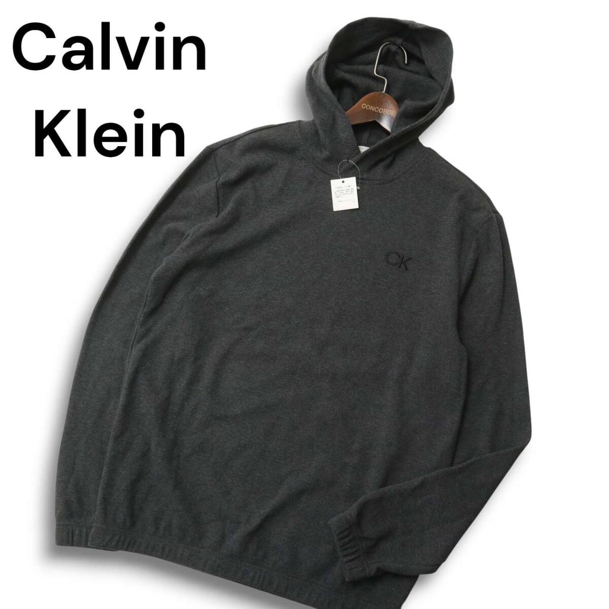 【新品 未使用】 Calvin Klein カルバンクライン ロゴ刺繍★ プルオーバー パーカー Sz.S メンズ グレー