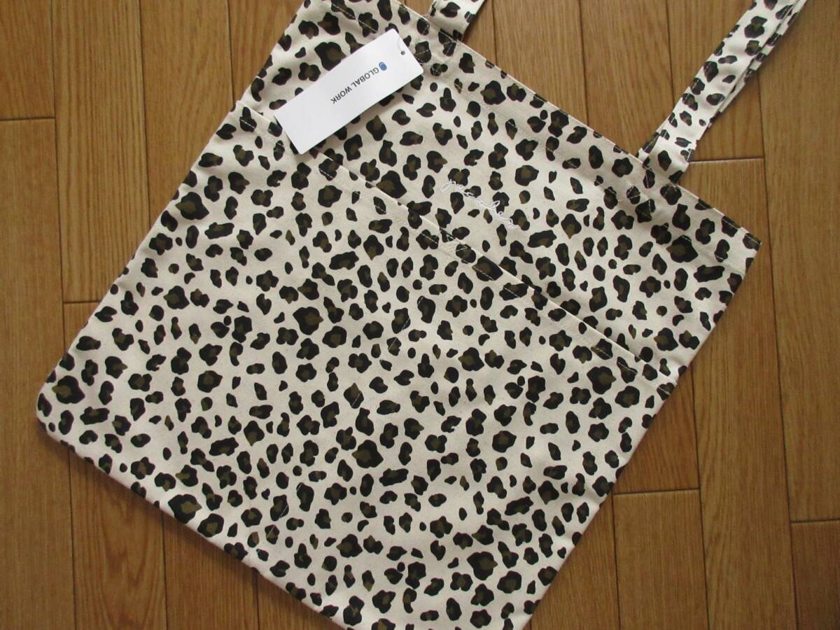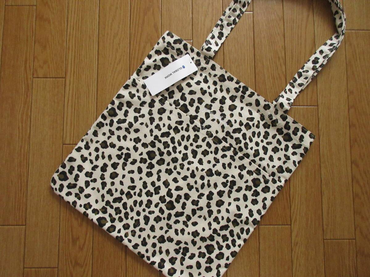 GLOBAL WORK グローバルワーク A4 刺繍 トートバッグ (レオパード) ポケット&仕切り付き バッグ ヒョウ柄