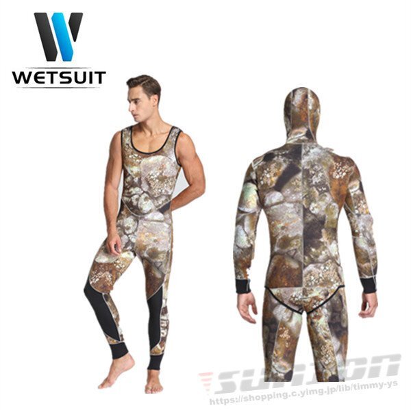 ウェットスーツ 5mm フード付き 2ピース ダイビング スピアフィッシング スキューバ フルスーツ マリンスポーツ シュノーケル