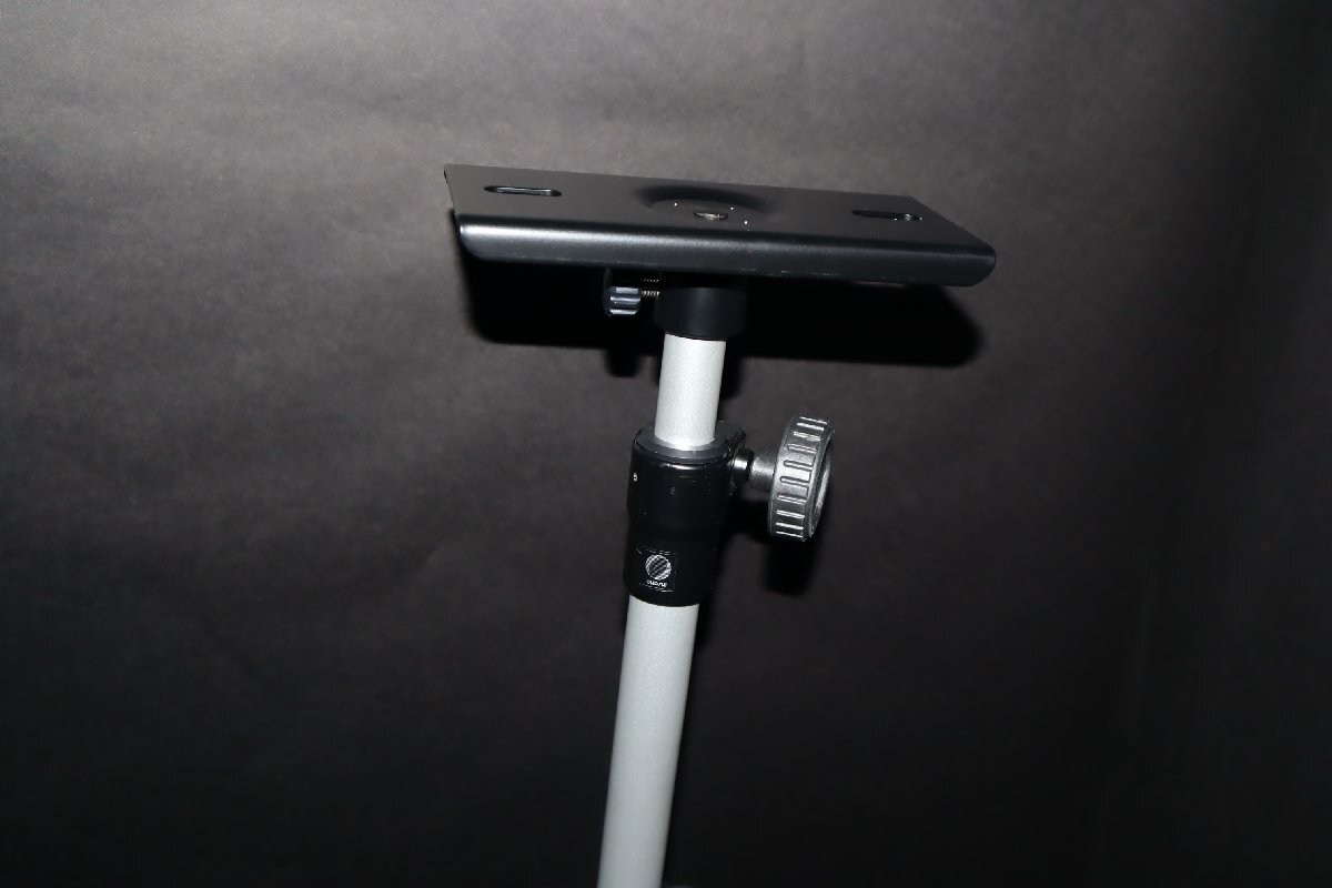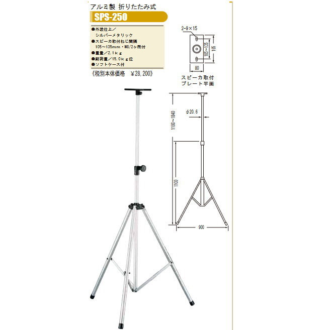 OHASHIのスピーカースタンド。スピーカー取付ネジ間隔、105-135mm。ソフトケース付き。シルバー。