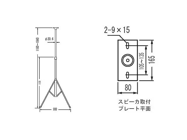 ■スピーカー取付ねじ間隔:105~135mm・M8/2ヶ所付