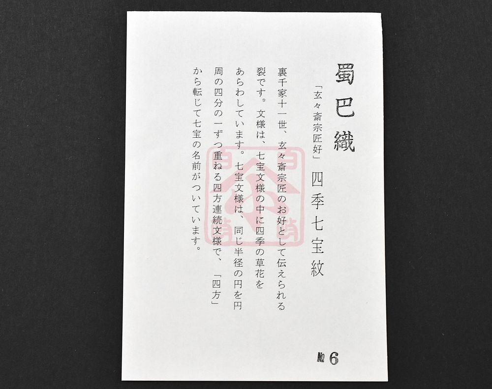 ▲楠廸庵▲蜀巴古帛紗 玄々斎好 四季七宝紋 茶道具