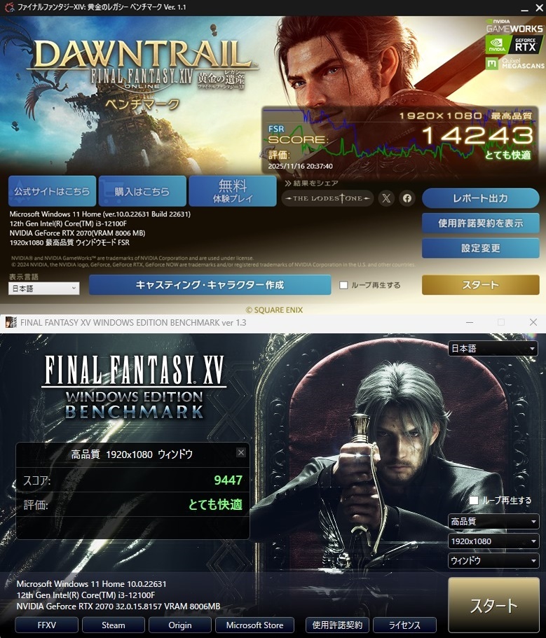 ●FF14/15ベンチマーク完走 ベンチ時室温20℃でMAX68℃