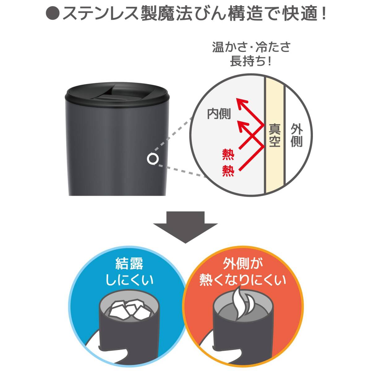 説明 ●全パーツ食洗機対応で洗いやすさにこだわった、スライド式フタ付きのタンブラー ●ステンレス製魔法びん構造で温かさ・冷たさ長持ち ●フタを付けたまま飲める ●ほこりを防ぎ保温に効果的なフタ ●スライド式フタで簡単に開閉できる ●分解しやすくパーツの凹凸が少ないので洗いやすい