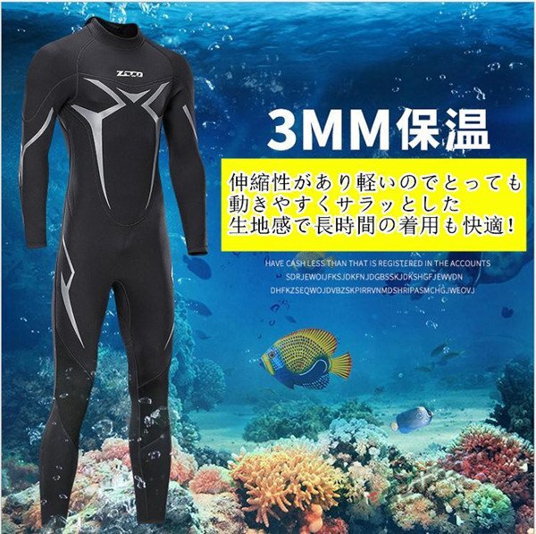 ウェットスーツ 3mm メンズ サーフィン フルスーツ バックジップ ネオプレーン ダイビング 釣り