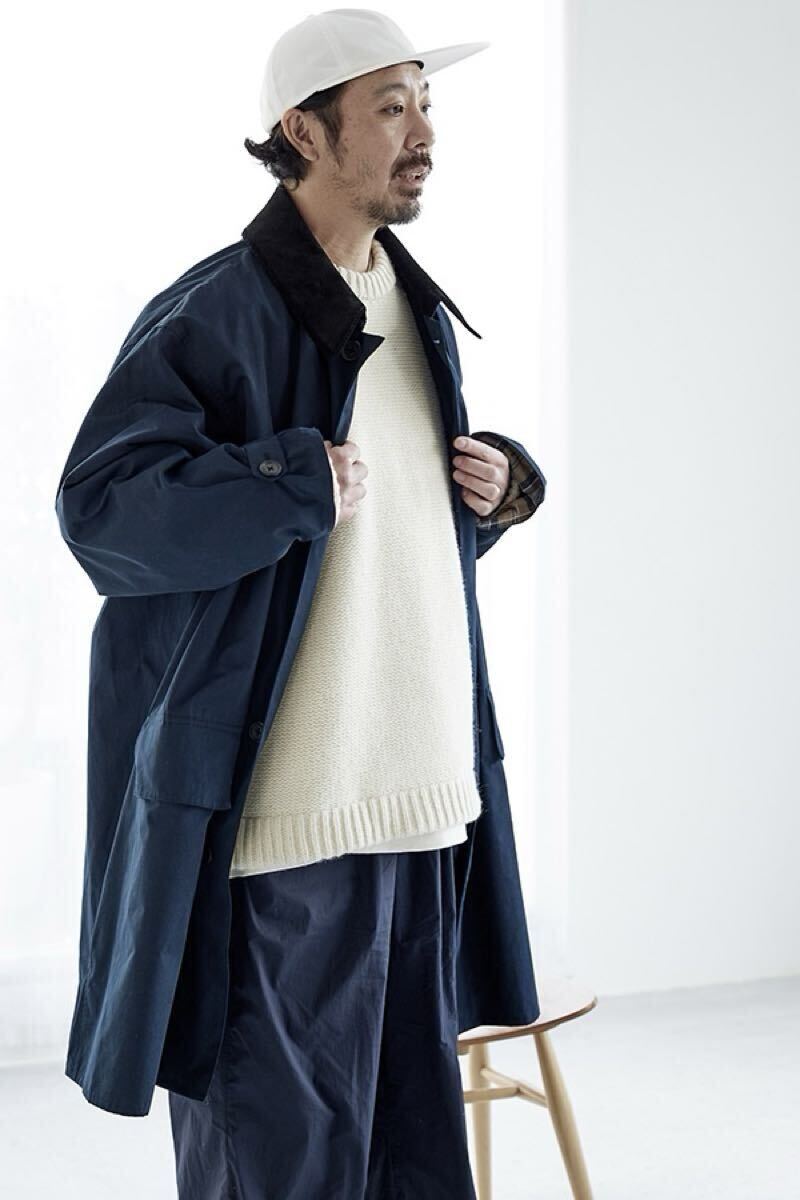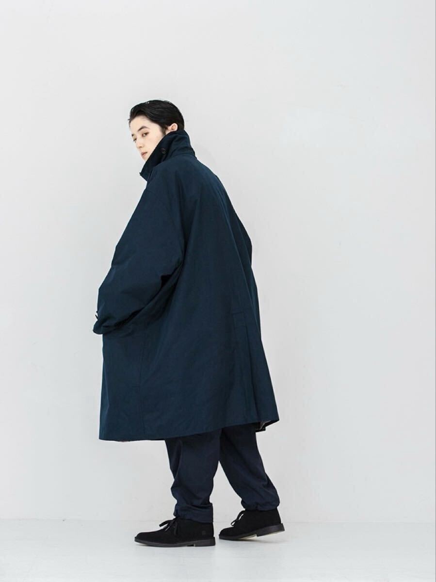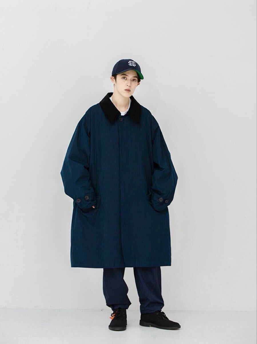 Barbour × SEE SEEのコートは、現行モデルには無い3/4コートをベースに身幅を3XL程の大きさにアレンジし袖丈や着丈をちょうど良いバランスに仕上げています。