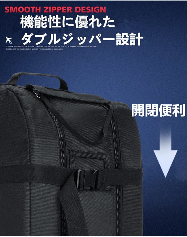 【商品特徴】◎デザイン性と機能性を両立仕様のトラベルバッグ。◎ショルダーストラップ付き、ラクラク移動!◎しなやかなナイロン素材 とても軽くバッグの掛けはずしも楽々!◎中にクッション性素材を採用、耐衝撃性にも抜群。◎大容量設計、ゴルフバッグやシューズ、ウエアもこれ一つにすっきり収納!◎アウターポケット付き、ウェアなど小物を収納に最適。◎ネームホルダー付き、マイバッグが一目瞭然!◎キャスター付きで移動の際の持ち運びも楽々!◎折り畳み式で、使わないときは折り畳んで収納便利。