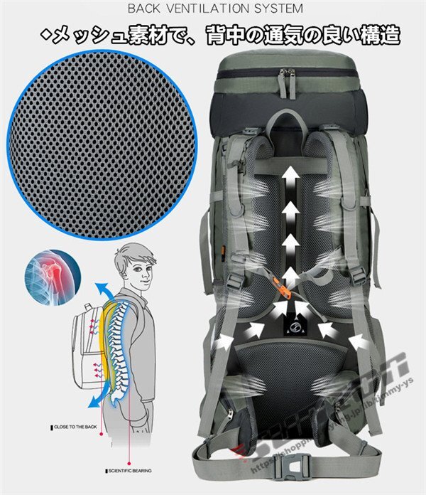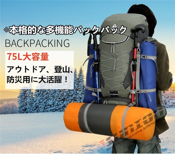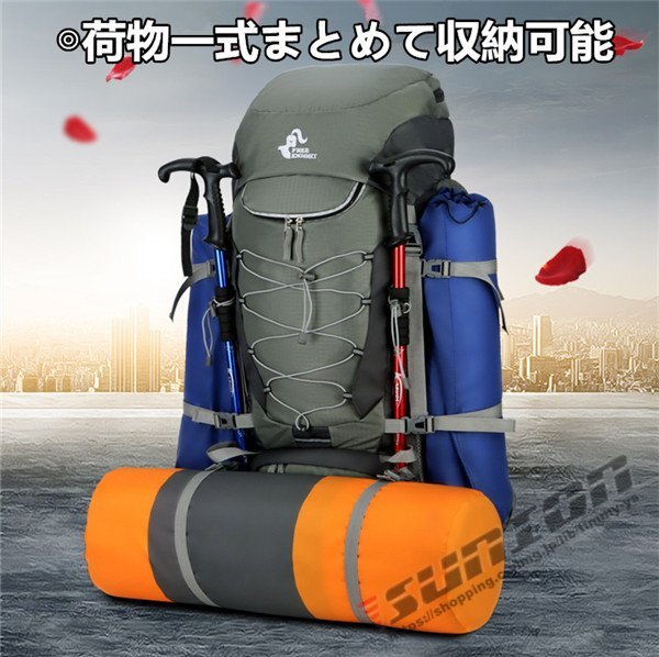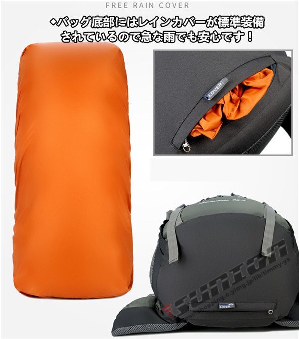 [商品特徴] ■ アウトドア、登山、防災用に大活躍!大容量のバックパックです!■ 内部は紐で調節可能な2気室構造で、とっても便利です !■ 背面には、腰への負担を和らげるクッションパッドとU型アルミフレーム1本入り!■ 腰ベルトは太く、身体を支えるので、とても安定します!■ 摩耗、引き裂き、擦リ切れに強く、耐久性に優れています。■ 防水レインカバー付き