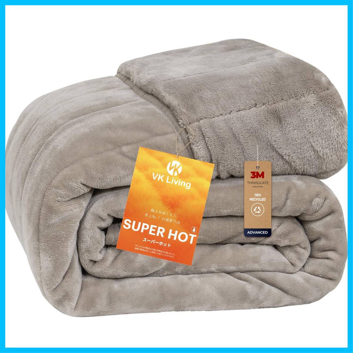 VK Living シンサレート毛布 厚手 シングル 冬用 【SUPER HOT】 フランネル 2枚合わせ 3Mシンサレート中綿 断熱素材 超極細繊維 LockHeat速暖発熱繊維 襟付き 掛け毛布 四層構造 保温 軽量 24時間持続制菌消臭 洗える 毛抜けない 静電気防止 140×200cm グレージュ