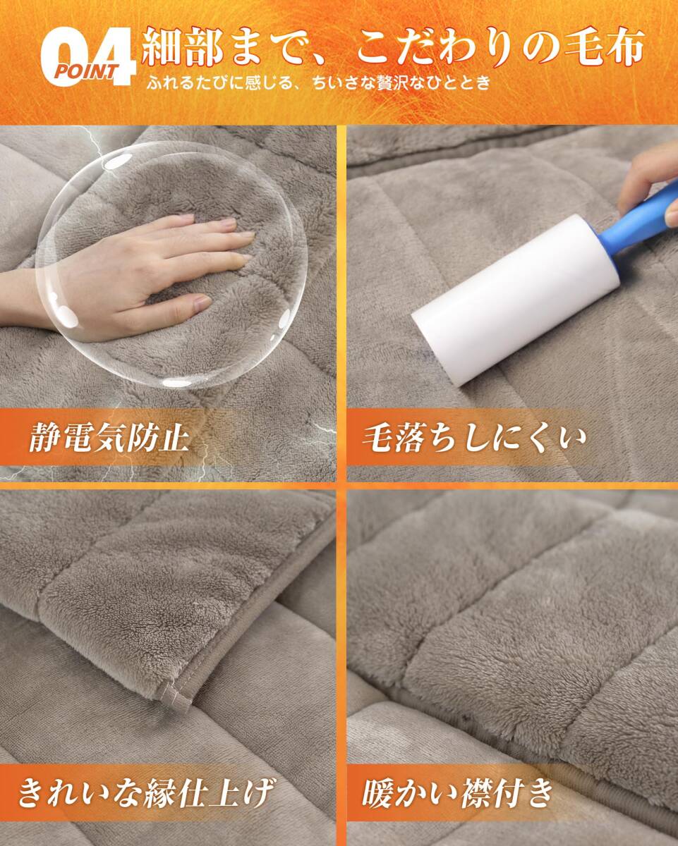 【超高密度フランネル】超高密度フランネル、厚みとグラム数を増やし、空気をたっぷり閉じ込めて、速暖と持続暖感を実現し、寒い冬に負けない!従来品と比べ保温効率が約20%向上し、室温20℃でも体感温度+2〜3℃ を実感できます。お布団に入った瞬間からぽかぽか。フランネルのグラム数を増やすことで、保温と蓄熱の効果を長時間持続させ、一晩中より長く快適な睡眠を提供します。