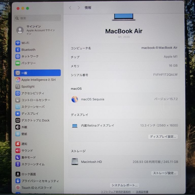 *60日保証* MacBook Air 13インチ M1 16GB 256GB バッテリー容量82% 充放電164回 インボイス可 送料当店負担 【k1109-420-1119】清
