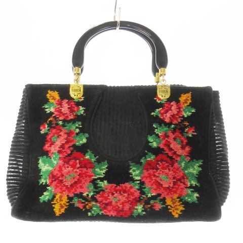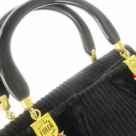 フェイラー FEILER ハンドバッグ シュニール織り メッシュ シアー 花柄 ロゴ 黒 ブラック /CK19 ■GY18 レディース