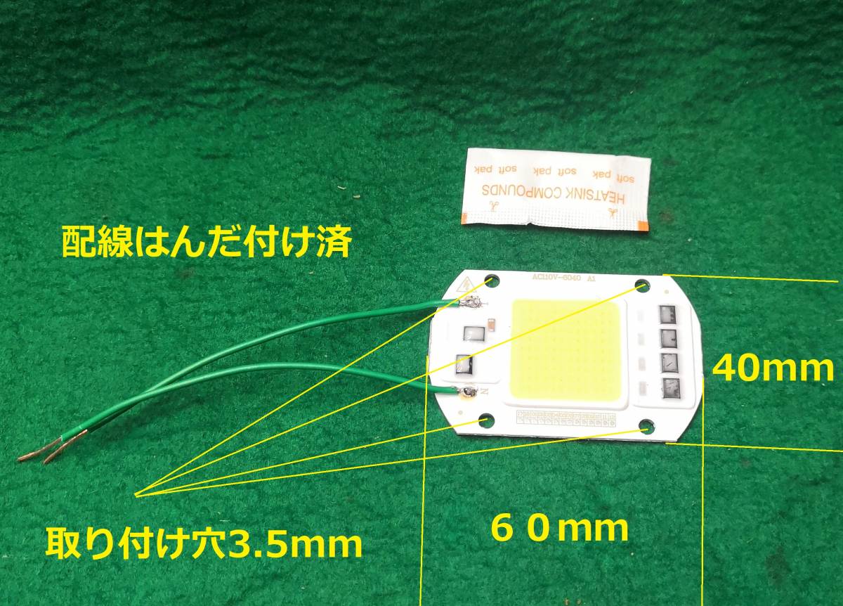 LED 50W白色LEDチップ光束2000ルーメン放熱グリス配線付き送料全国一律ゆうメール180円