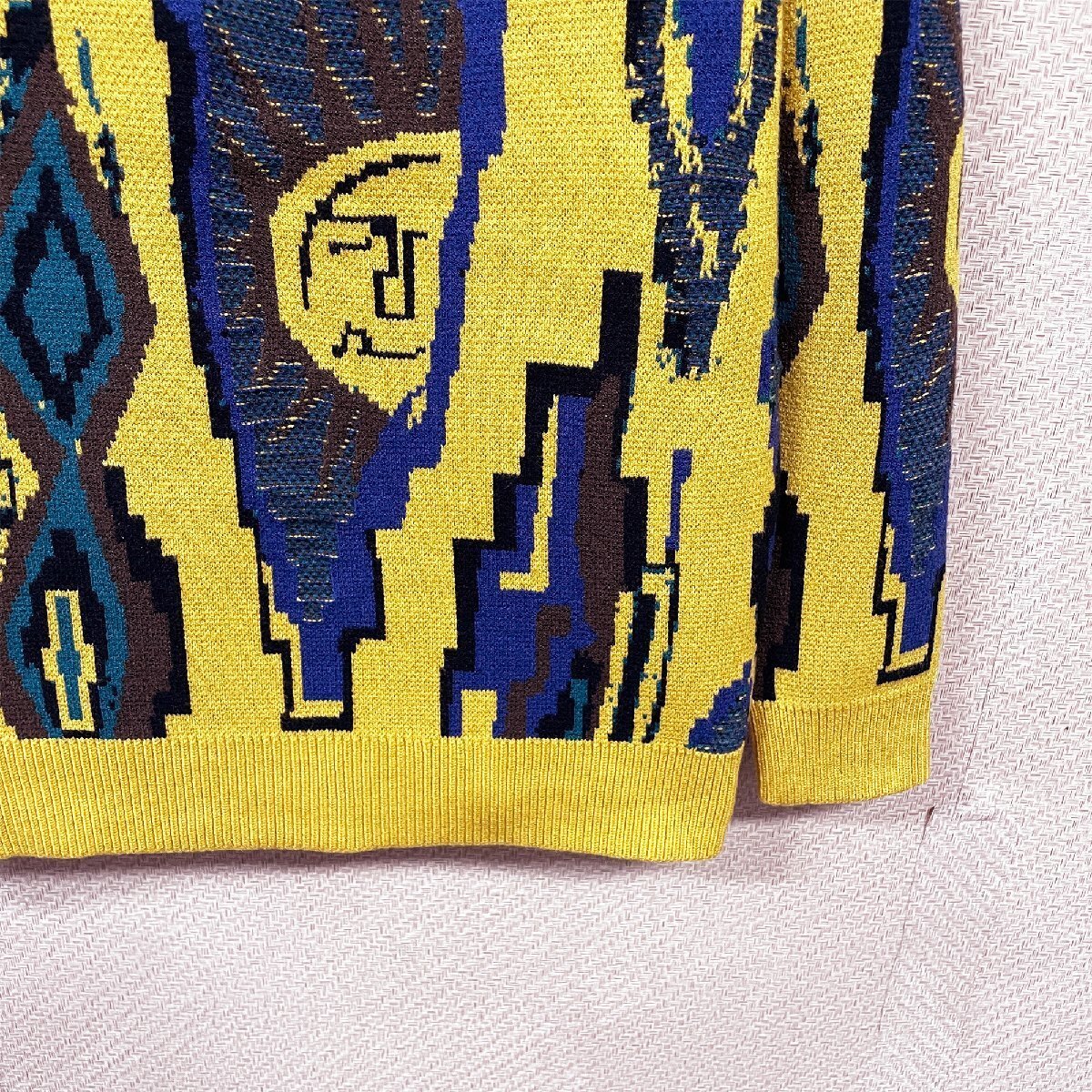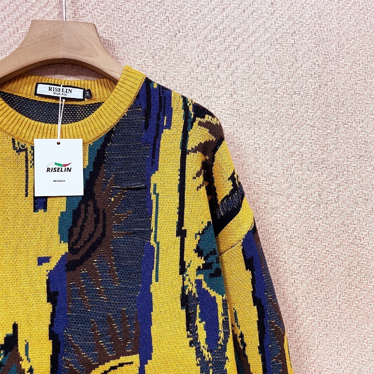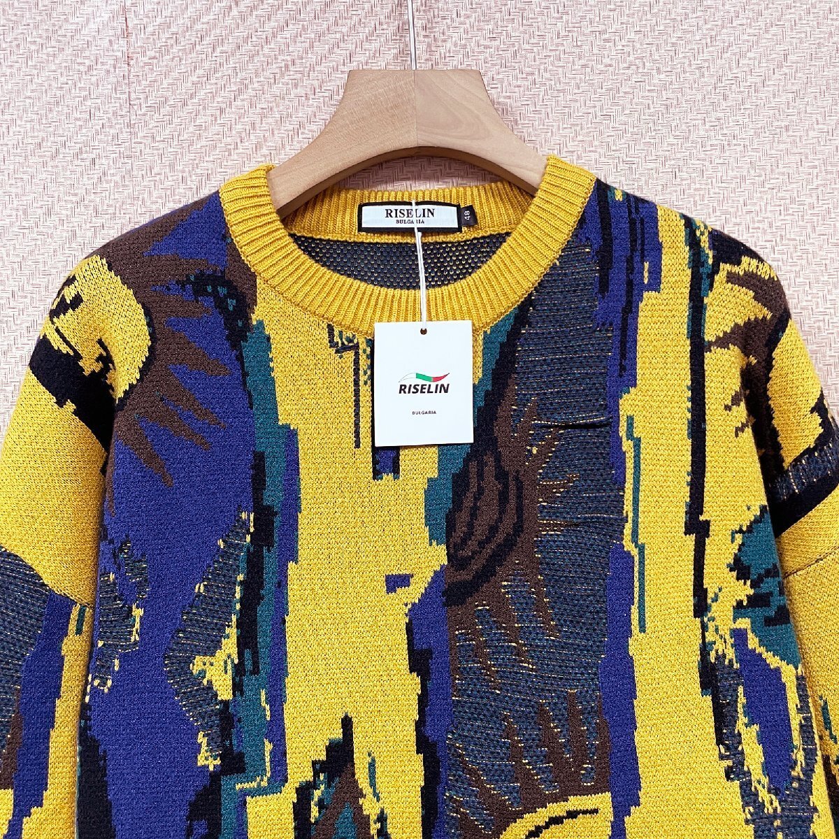 個性 ヨーロッパ製※定価5万◆ブルガリア発※RISELIN セーター ウール混 ソフト 暖か ゆったり 総柄 ニット トレーナー 秋 冬 春 2XL/52