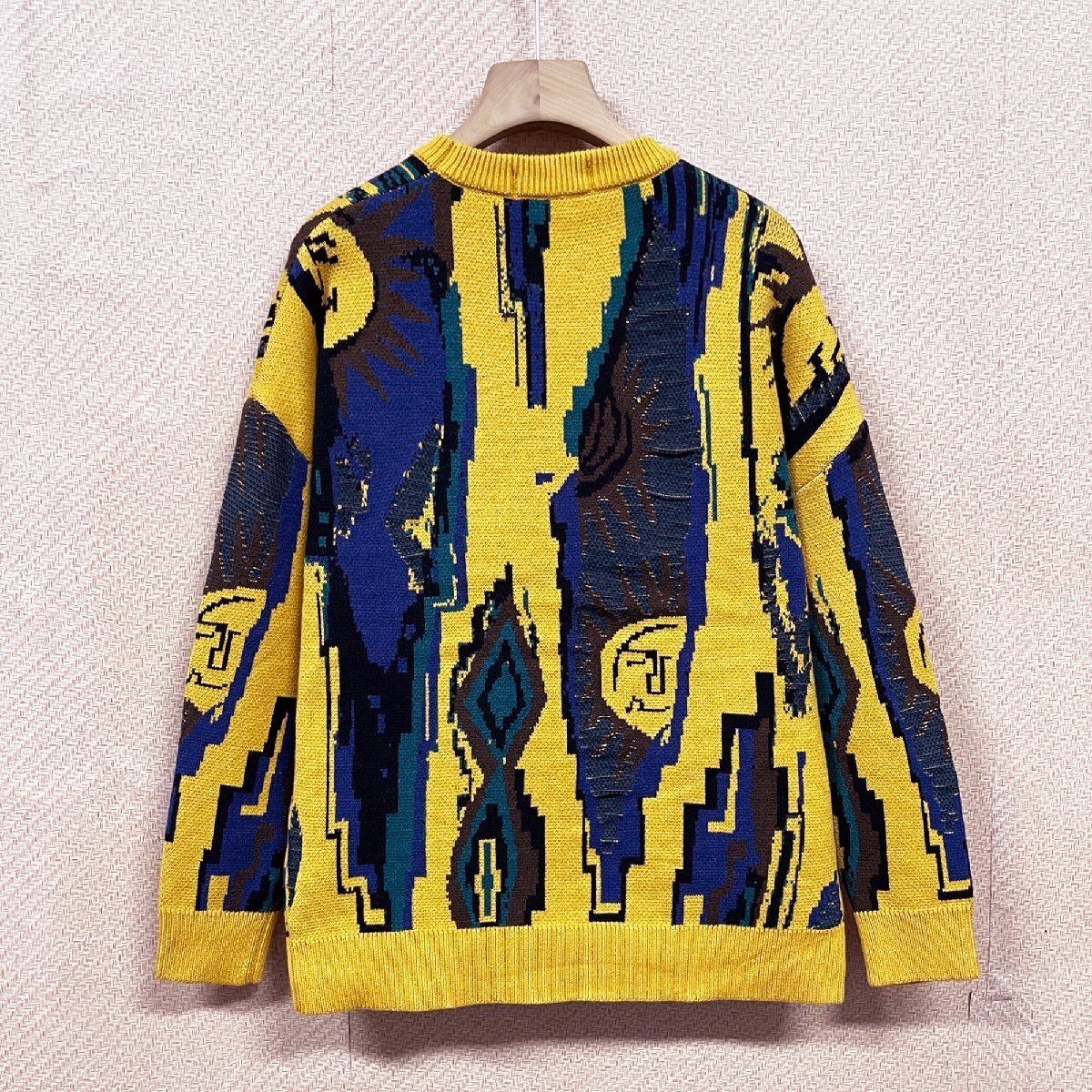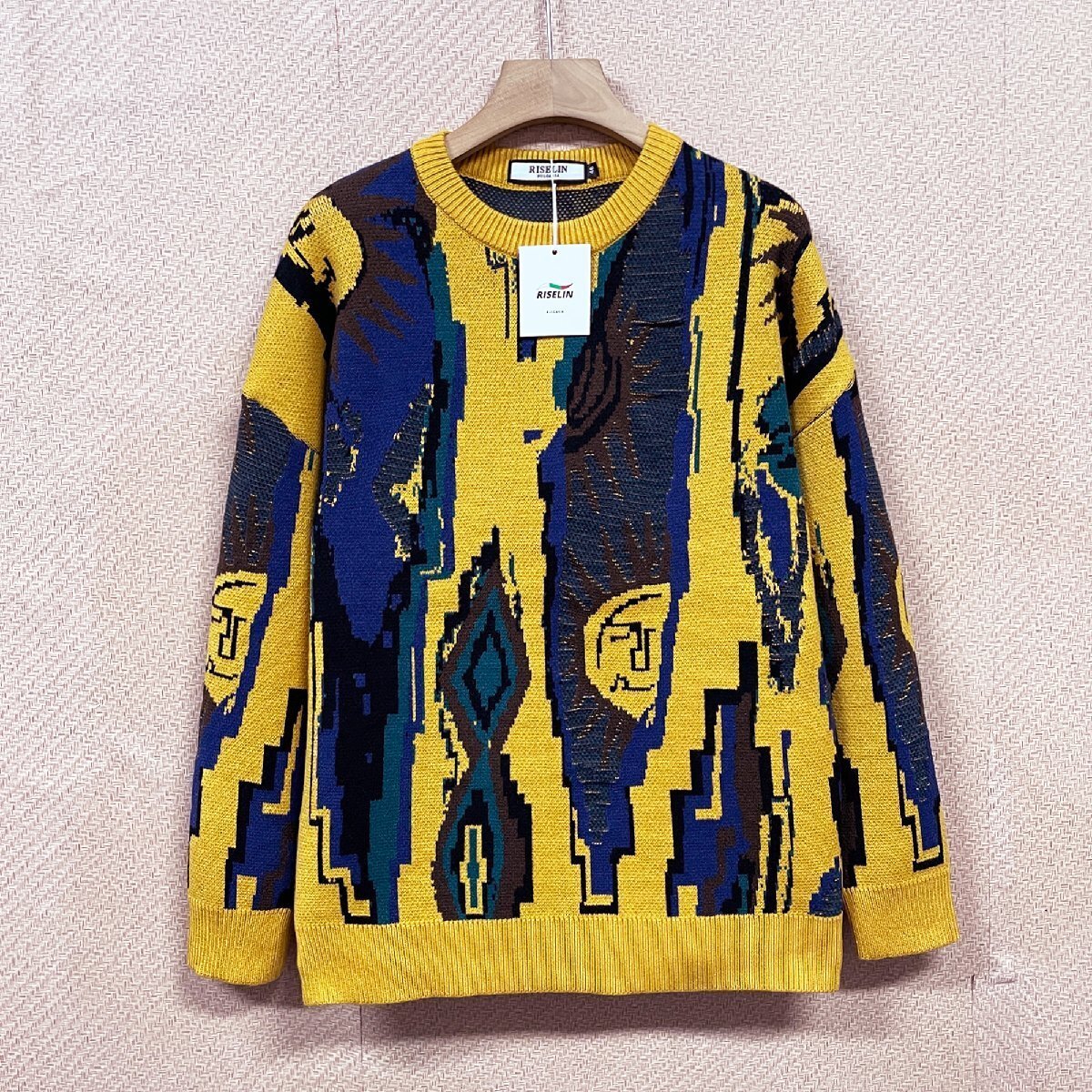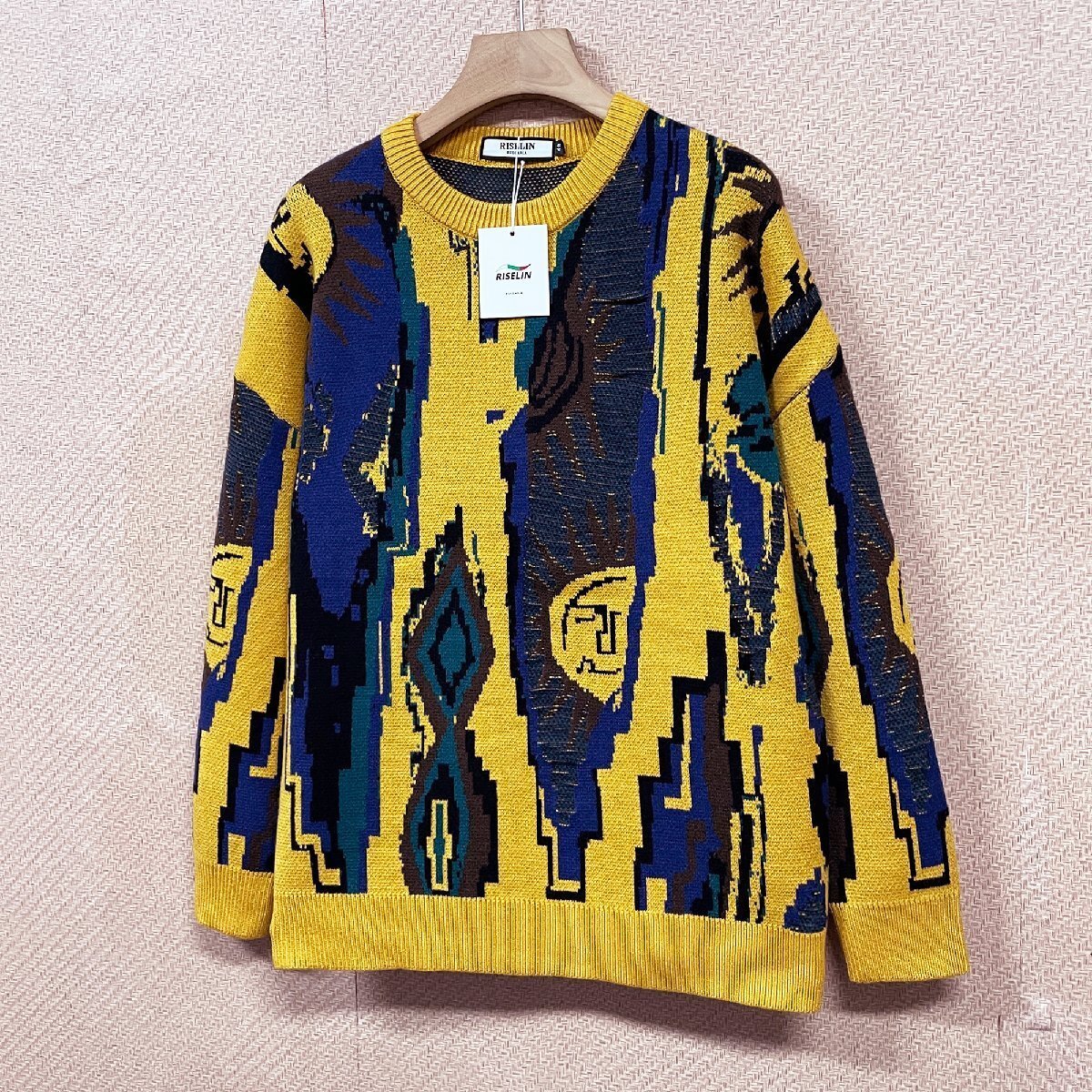 個性 ヨーロッパ製※定価5万◆ブルガリア発※RISELIN セーター ウール混 ソフト 暖か ゆったり 総柄 ニット トレーナー 秋 冬 春 2XL/52