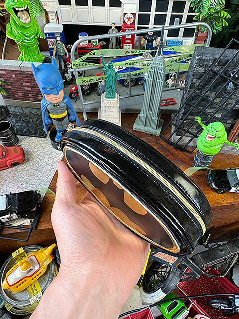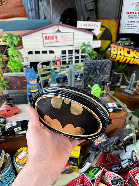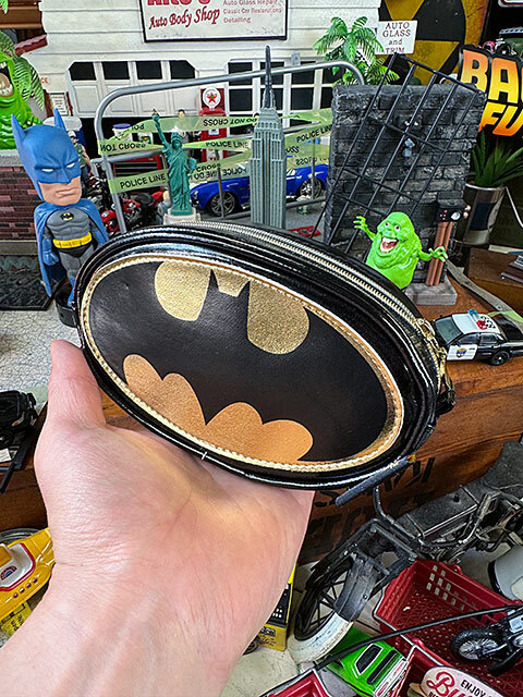 筋肉隆々の胸に輝くバットマンのシンボル、コウモリロゴのオーバルポーチ!