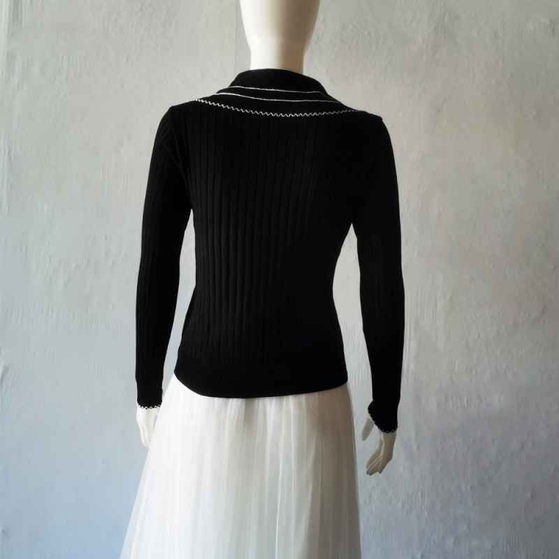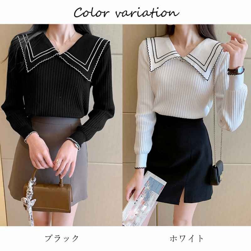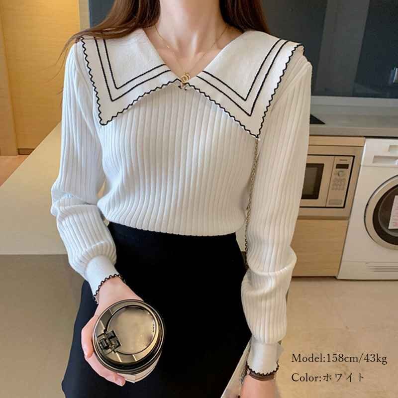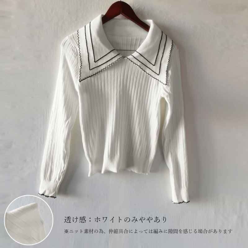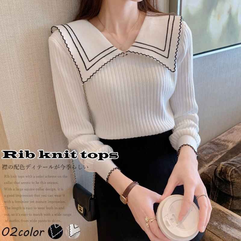 襟の配色ディテールが今季らしいリブニットトップス
