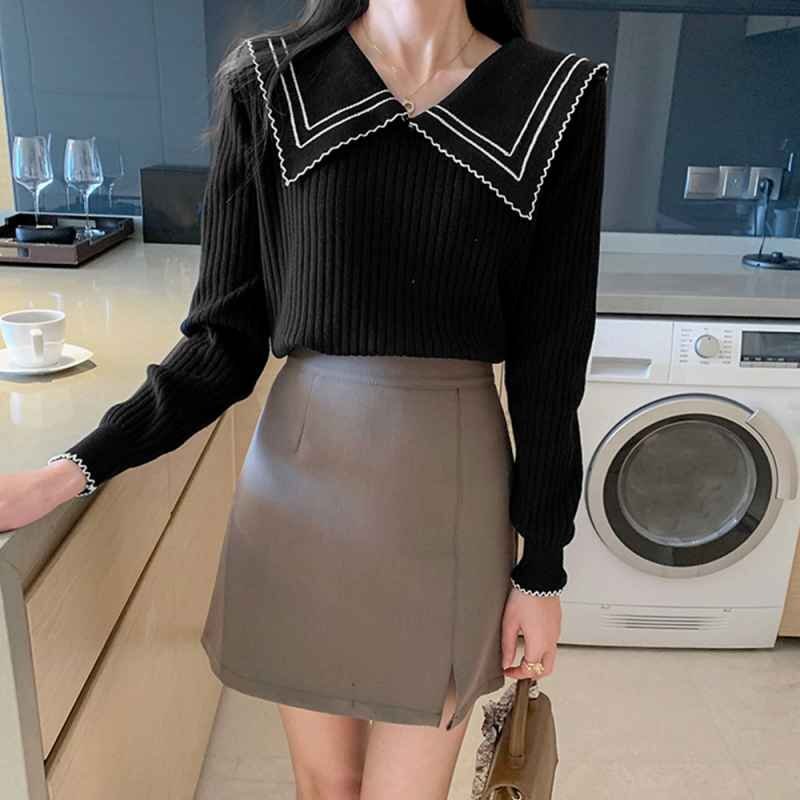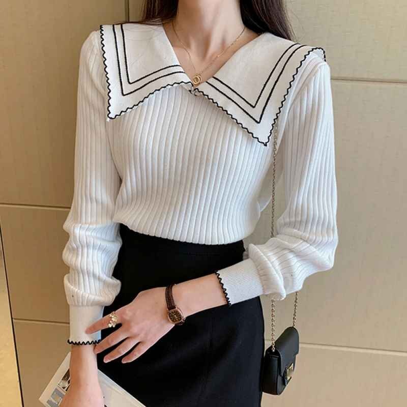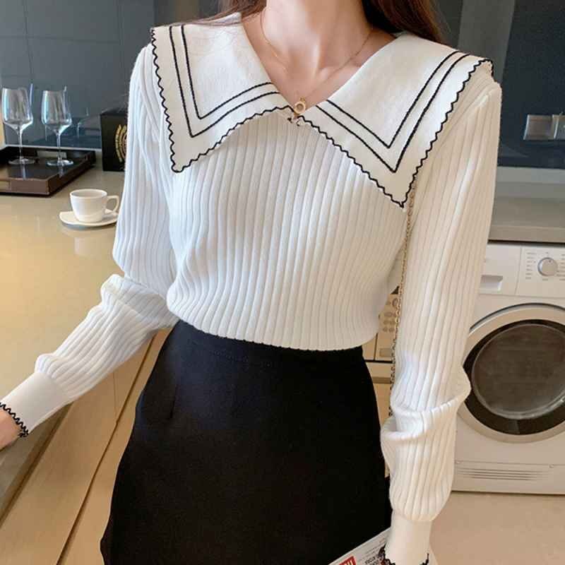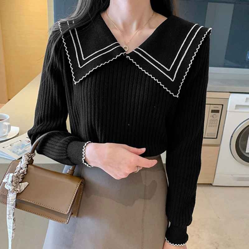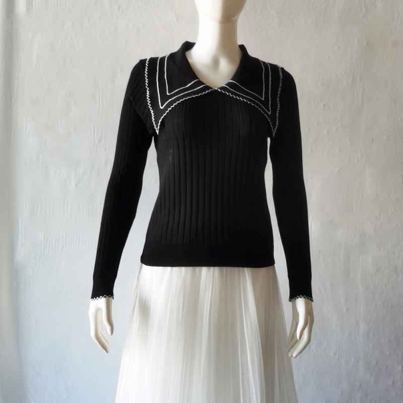 襟の配色ディテールが今季らしいリブニットトップス