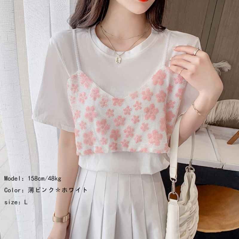 [XL]着丈:約62cm 肩幅:約41cm 袖丈:約22cm ゆき:約42.5cm 身幅:約51cm 胸囲:約102-112cm