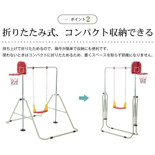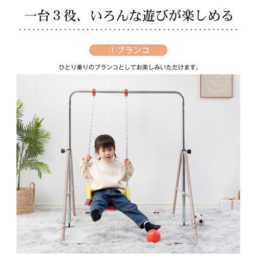 • 【季節や天候を気にせずに楽しくおうちで遊びながら運動!】 01 ひとり乗りのブランコとしてお楽しみいただけます。 02 ブランコを外せば鉄棒に早変わり。前まわりも逆上がりも、おうちで楽しく練習できます。 03 バスケットゴ一ルを取付けて、ボ一ル遊びがお楽しみいただけます。