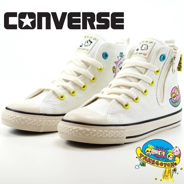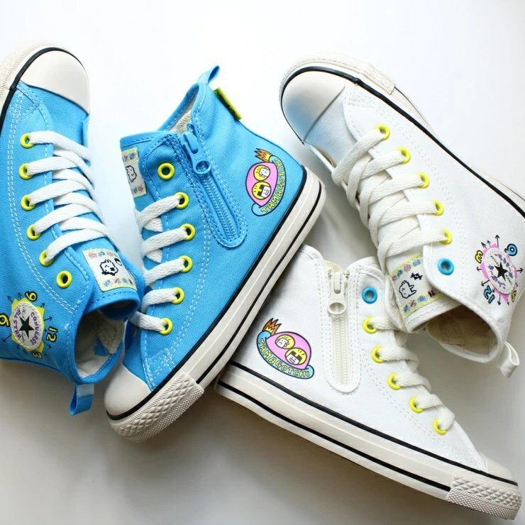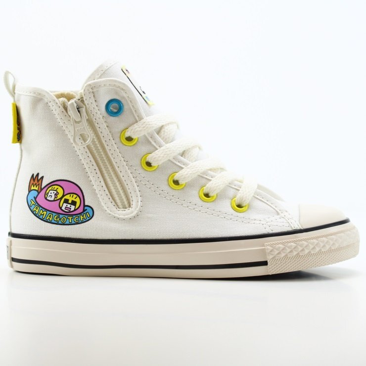 | 「POP-UP JAPAN」をテーマにした、チャイルドオールスターNのコラボレーションモデル。 1996年11月23日に初代が発売され、今もなお幅広い世代に愛される日本を代表する携帯育成デジタルペット「たまごっち」とコラボレーション。 アンクルパッチには90年代のたまごっちのフォントや時計柄を落とし込み、外側にはたまごっちたちの乗ったUFOをプリントしたポップなデザイン。 印象的な液晶画面を再現したオリジナルの織ネームをタンに採用し、たまごっちの文字を入れたピスネームを踵に付加。 アンクルパッチの文字は右足をアルファベット・左足をひらがなで、左右それぞれにプリント。 たまごっちのパッケージをイメージしたオリジナルカートンもポイント。 しなやかなラバーソールを採用し、足の曲がる位置でしっかり屈曲するソール設計に加え、着脱をサポートするファスナー付き。 ファンも納得のディテールと、子供に優しい履き心地を兼ね備えた一足。 ブルー、ホワイトの2カラー展開。 | |