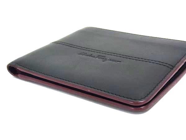 Salvatore Ferragamo フェラガモ レザー 二つ折り 財布 ウォレット 札入れ 小銭入れ カード入れ メンズ レディース ブラック系 DK7581