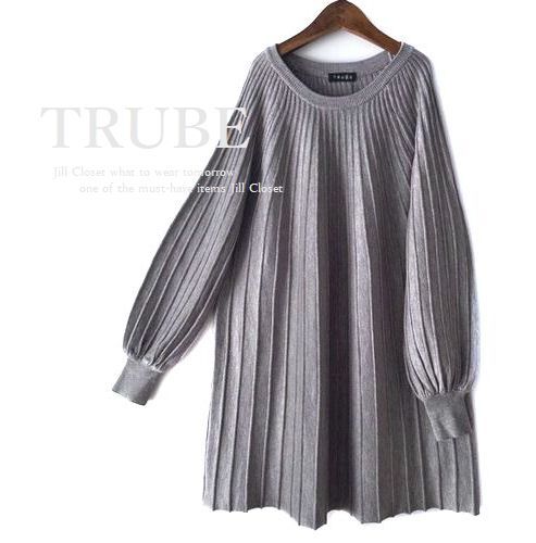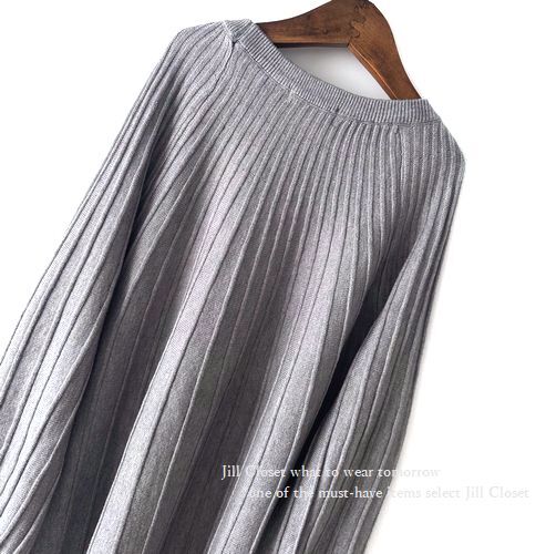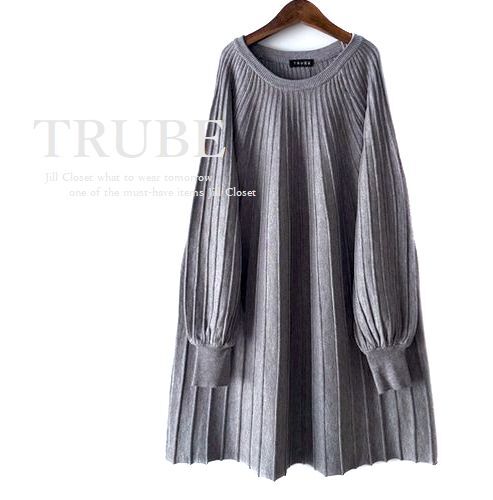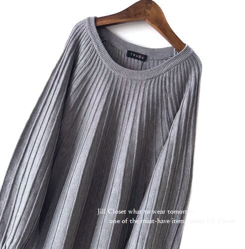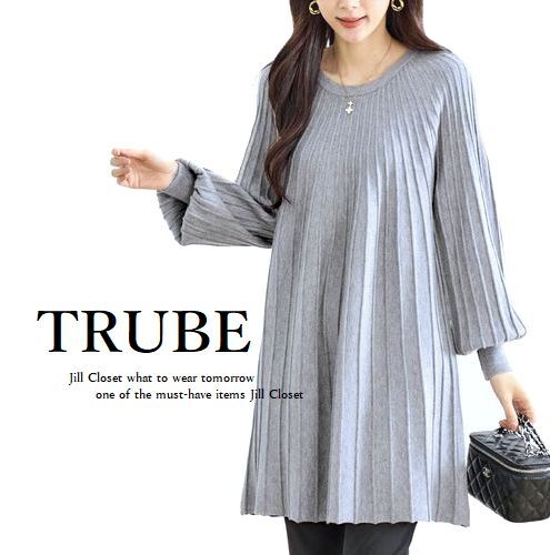 もっちり柔らかなハイゲージニット。お上品なリブ×プリーツ風ジャガードデザイン。ぽわん袖が自慢のプルオーバーチュニック。気になるスタイルもカバー出来てデイリーにお出かけに大活用頂けます。通勤オフィス対応のきちんと感もございます。気になるスタイルもしっかりカバー出来ます。春・秋冬とロングシーズン◎カーディガンやアウターのインナーにも最適です。幅広い世代の方におすすめです。全箇所柔らかく伸縮性の高いストレッチニット素材。