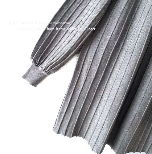 新品【送料185円】伸縮◎ジャガード織り*ハイゲージニット*ぽわん袖♪通勤オフィス対応◎スタイルカバー*プルオーバー*チュニック6000.GR