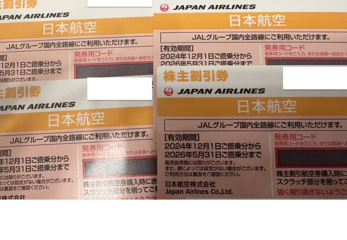 4枚まで JAL 日本航空 株主優待券 番号通知 搭乗 26年5月31日迄分 発送も可能 r