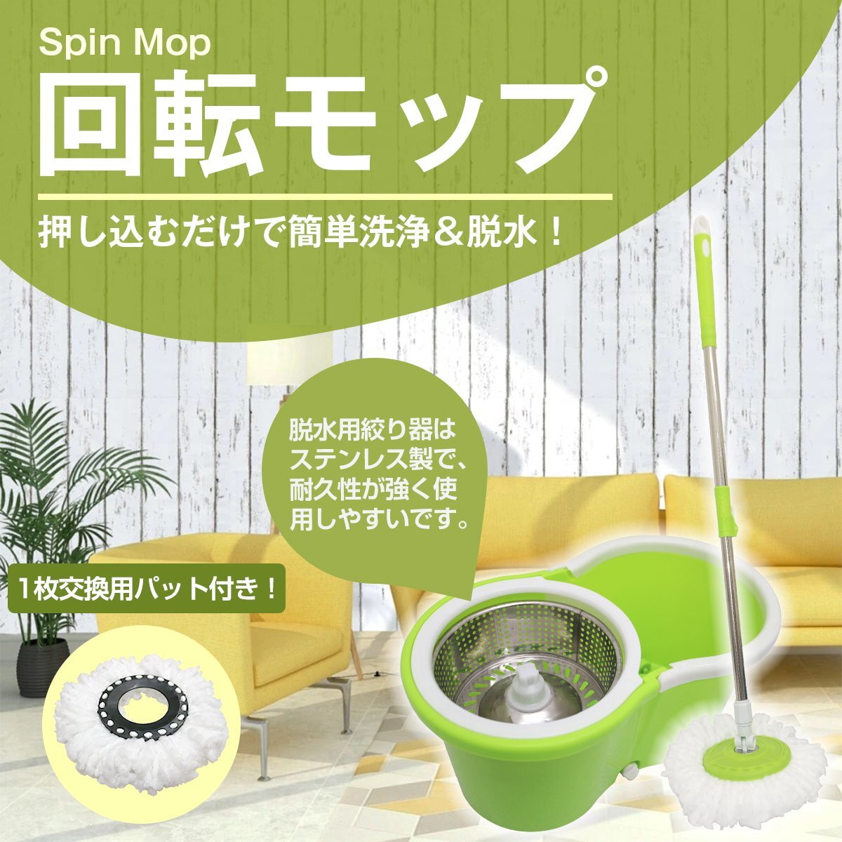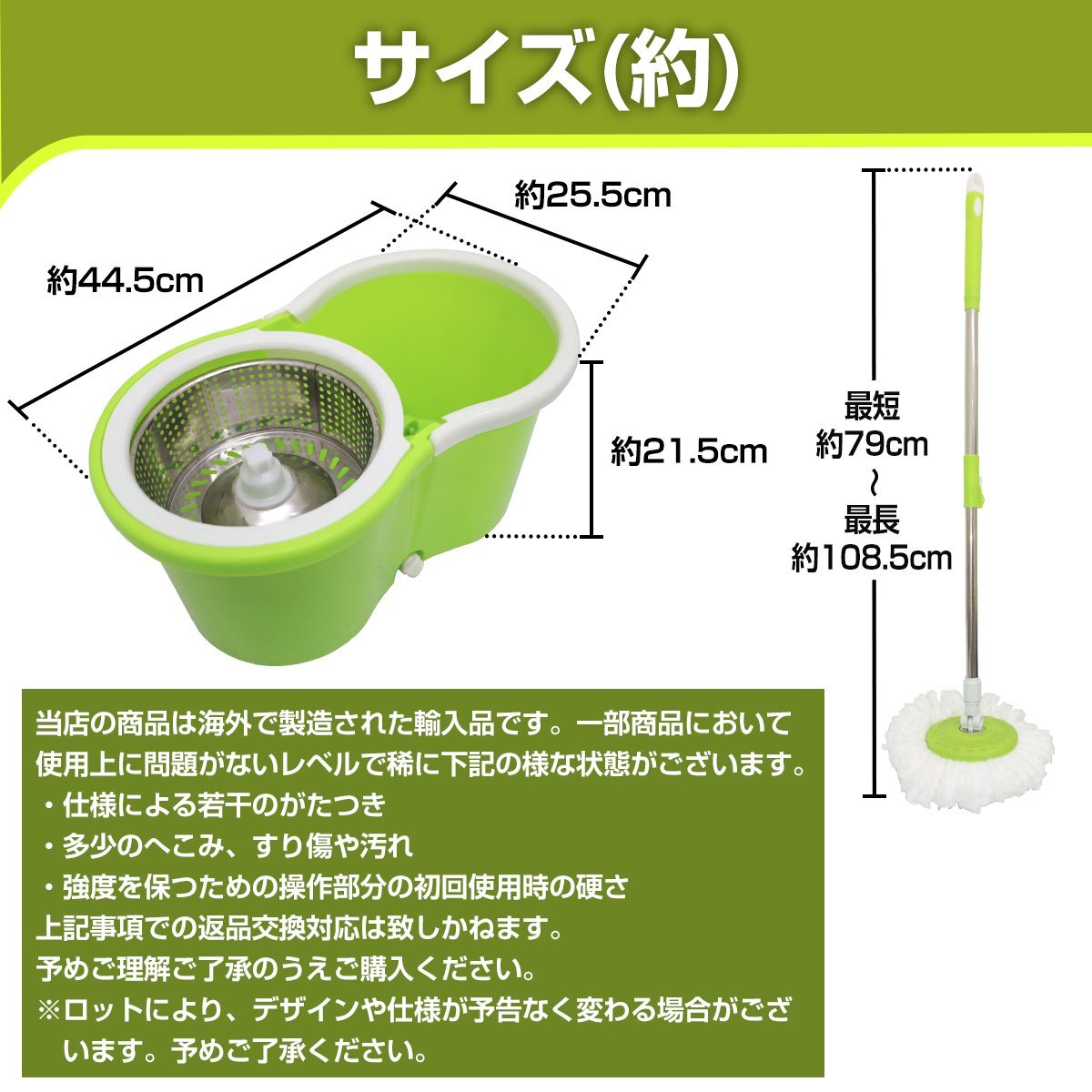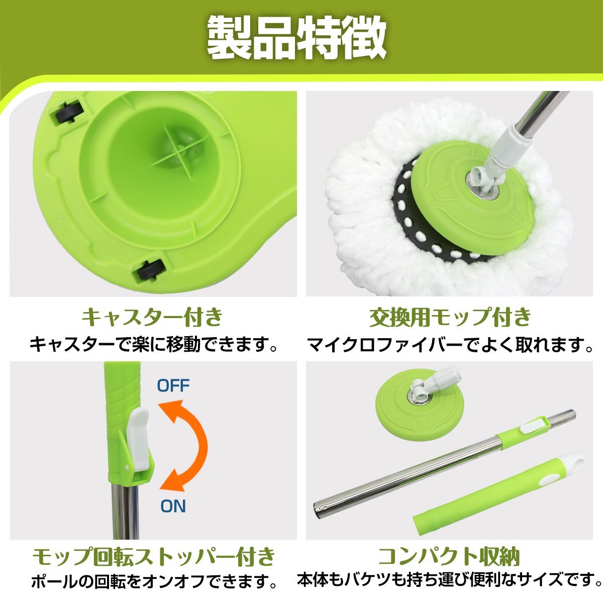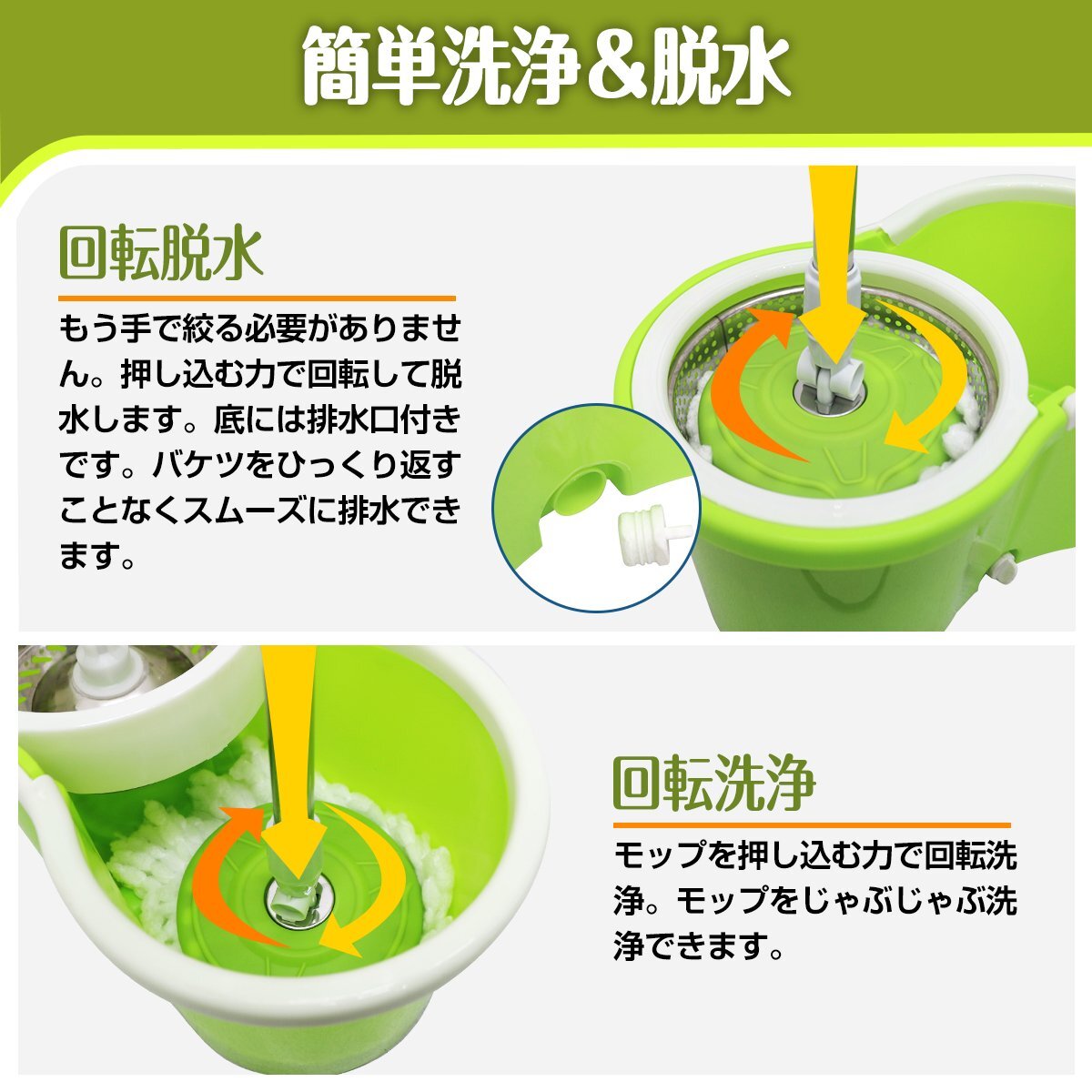 洗浄 脱水 ダブル 回転モップ ステンレス 脱水層 マイクロファイバー スピン モップ バケツ 床掃除 床拭き 雑巾 手回し 緑