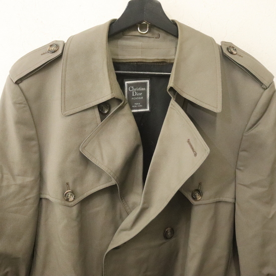 R867 80sビンテージ クリスチャンディオール トレンチコート■1980年代製 表記42サイズ グレー Dior ロングコート アメカジ 古着卸