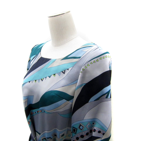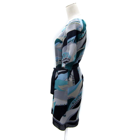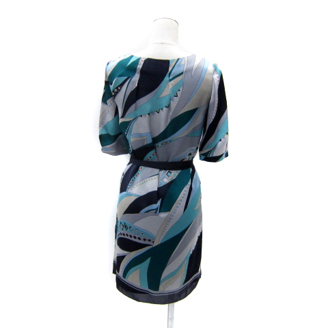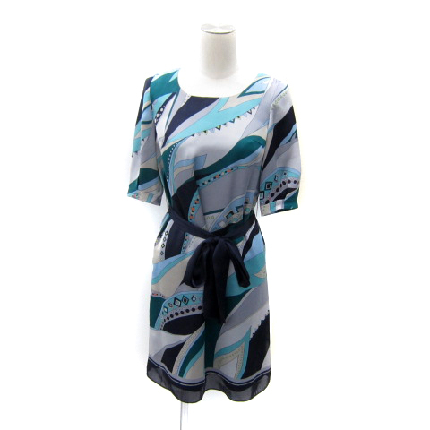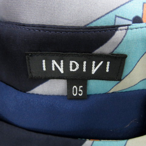 インディヴィ INDIVI ワンピース ひざ丈 五分袖 ラウンドネック 総柄 リボン マルチカラー 5 XXS グレー /SY2 レディース
