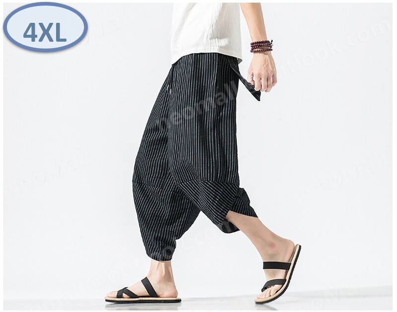 お買い得☆メンズ サルエルパンツ ブラック 4XL カジュアル ヒップホップ 7分丈 スウェット 無地 ポケット付 オールシーズン【063】