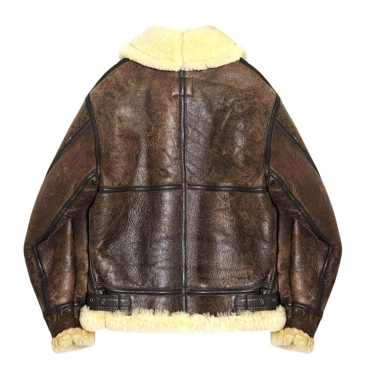 | 商品説明 | 【商品】 美品 定価23.7万 高年式 USA製 AVIREX アヴィレックス 現行型 胸タグ TYPE B-3 リアルムートン フライトジャケット 34 羊革 ボマーブルゾン 【商品説明】 AVIREX(アヴィレックス)の現行初期 胸タグ TYPE B-3 リアルムートン フライトジャケットになります。 品番:2102、定価も高額のため滅多に出品されることない、左胸に『AVIREX』のレザーパッチが付属する上野商会取り扱いの現行初期モデルになり、本格志向の方にお勧めなUSA製になります。 最新の現行モデルのペラペラなムートンとは違い、段違いに質の良いムートンを惜しみなく使用した完成度の高い逸品になります。 老舗ミリタリーブランド「AVIREX」の定番中の定番、『TYPE B-3』は1934年に誕生した米国陸軍航空隊に採用された、冬季ヘビーゾーン(-30℃~-10℃)の環境にも対応可能な寒冷地気候用シープスキン製フライトジャケット。 保温・耐寒性能を重視して開発された為、羊革(シープスキン)製なのも大きな特徴の一つ。 1940年代に入り、爆撃機の機体が温度調節機構をもつようになり姿を消すことになったが、未だに寒い冬を越すミリタリーアイテムとして愛されております。 表身は柔らかいシープスキンにコーティングが施されており、着れば着るほど味が出てきますので一生の一枚になること間違いなしのアイテム。 寒冷地気候用として作られてるだけあって、ハードな使用にも耐えるフロントジッパー。 衿は首の保温と寒風の進入を防ぐために、2本のベルトとバックルで閉めることが可能。 左右にハンドウォーマーポケット、内側には左右にファスナー付きのキャンバス地の内ポケットもあるので、実用性も抜群。 左胸には『AVIREX』のロゴ刻印入りのレザーパッチ、バックル部分にはブランドロゴの刻印、ポケット内にはブランドロゴ入りのピスタグがあしらわれており、ブランドをしっかりと主張した特徴的なデザインで、存在感のある着こなしを楽しめます。 デザイン面と機能的なディティールは勿論ですが、特筆すべきはその保温性。 寒冷地気候用として作られてるだけあって、袖の裏から裾の裏まで全てが羊毛で出来た肉厚なボア仕様ということもあり、極限の寒さでも体温に包まれているような暖かさを維持します。 どこに行っても上半身は寒さを感じることは無く、真冬にバイクに乗られる方にも是非オススメ。 今ではアメカジファッションでも真冬の定番アウターとして確立しておりますので、1枚は持っておきたい一品。 武骨さもありながら、上質なデザインで末永く愛用していただける逸品。 日本人の体型に最もマッチするサイズ『34』の高年式のモデルは滅多に中古市場に滅多出回ることのないレアアイテムです。 アヴィレックスならではの拘りの作りと、高級感のある仕上がりの一着。 定価では手の出難い非常に高価なアイテムになりますので、本物志向の方は是非この機会にご検討下さい! 【サイズ】 表記:34/S相当 肩幅:52㎝(肩縫い目間・直線) 身幅:55㎝(脇下・直線) 袖丈:63㎝(肩先~袖先) 着丈:63㎝(後襟下~裾先) (※多少の誤差はお許しください。) 【素材】 生地:羊革(ムートン) 生産国:USA製 【カラー】 ブラウン 【コンディション】 レザーアイテム特有の若干の擦れがあります。 全体的な使用感も少なく、まだまだご使用頂ける非常に状態の良い商品です。 これからも十分に着用頂けます。 ※画像を参考にして下さい。 ※状態の確認は慎重に行っていますが、商品によっては全てのダメージを抜粋して記載する事が難しいため、記載された情報(破損や汚損・他目立つダメージ等)以外に、細部の破損や汚損、欠品等の見落としがある場合がございます。 予めご了承くださいませ。 |