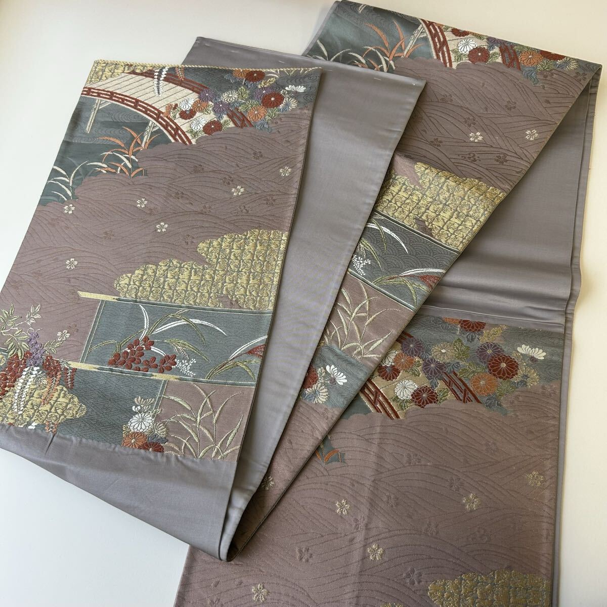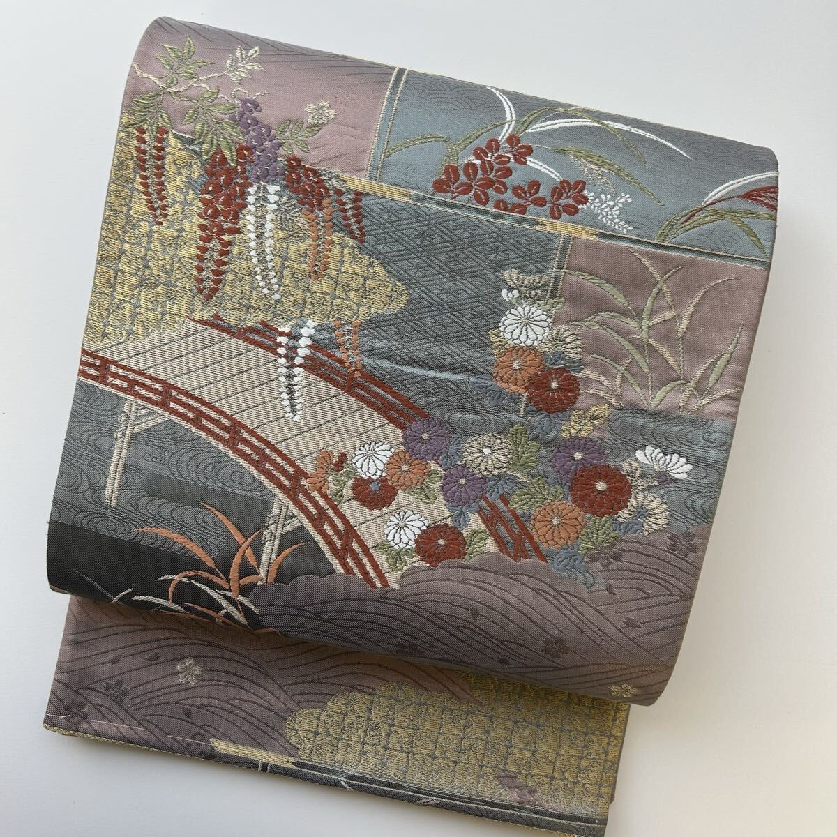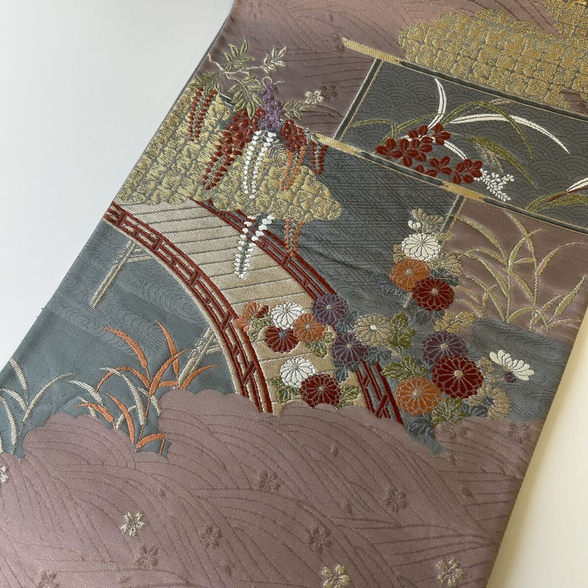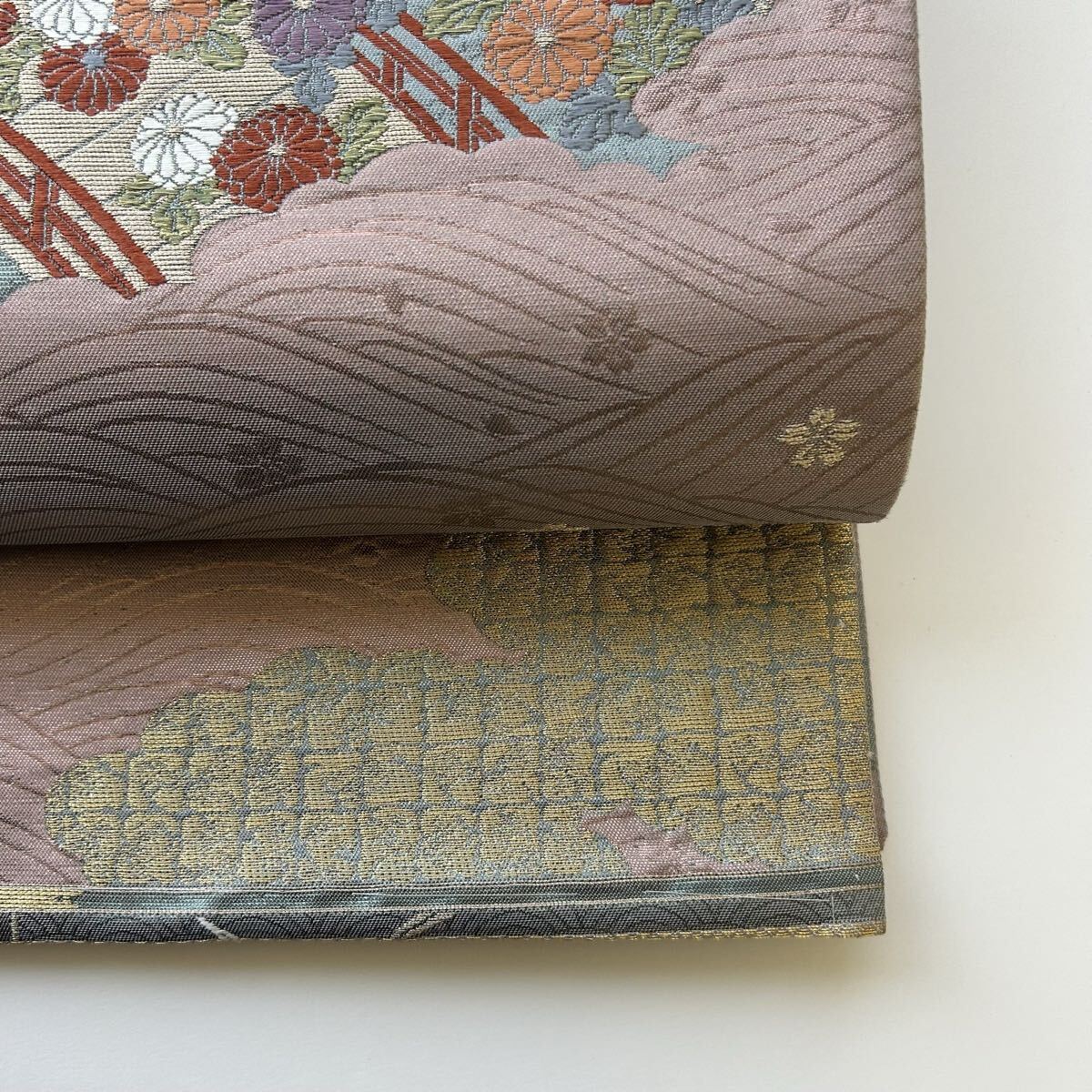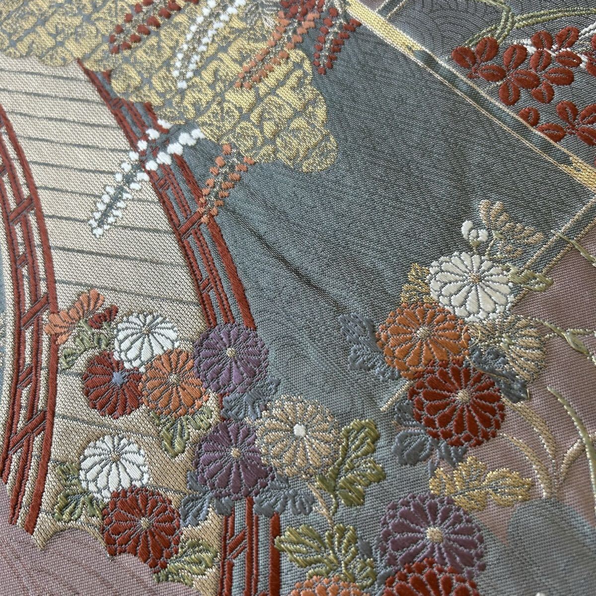 【楓】袋帯 正絹 唐織 美しい花 六通 KK-2183