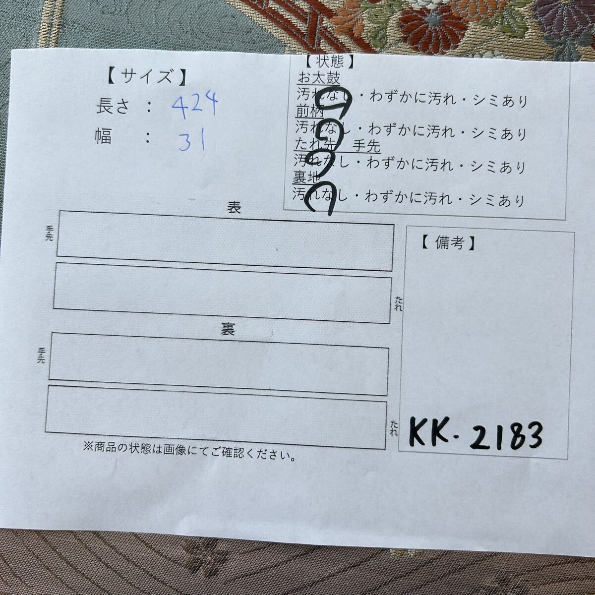 画像内に検品表を掲載しております。