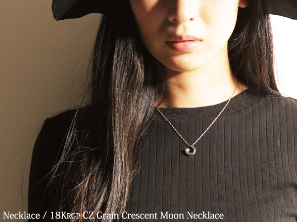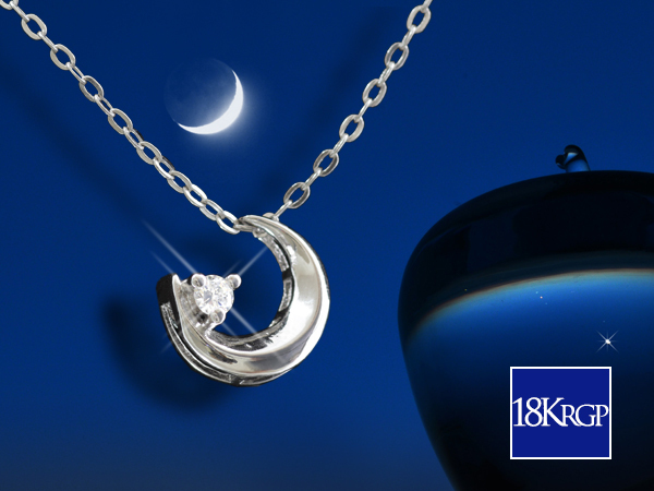 新品/ネックレス/18KRGP/月/ムーン/ジルコニア/レディース/シルバー/18金/18K/ホワイトゴールド/チェーン/シンプル/上品/女性/ダイヤ/CZ