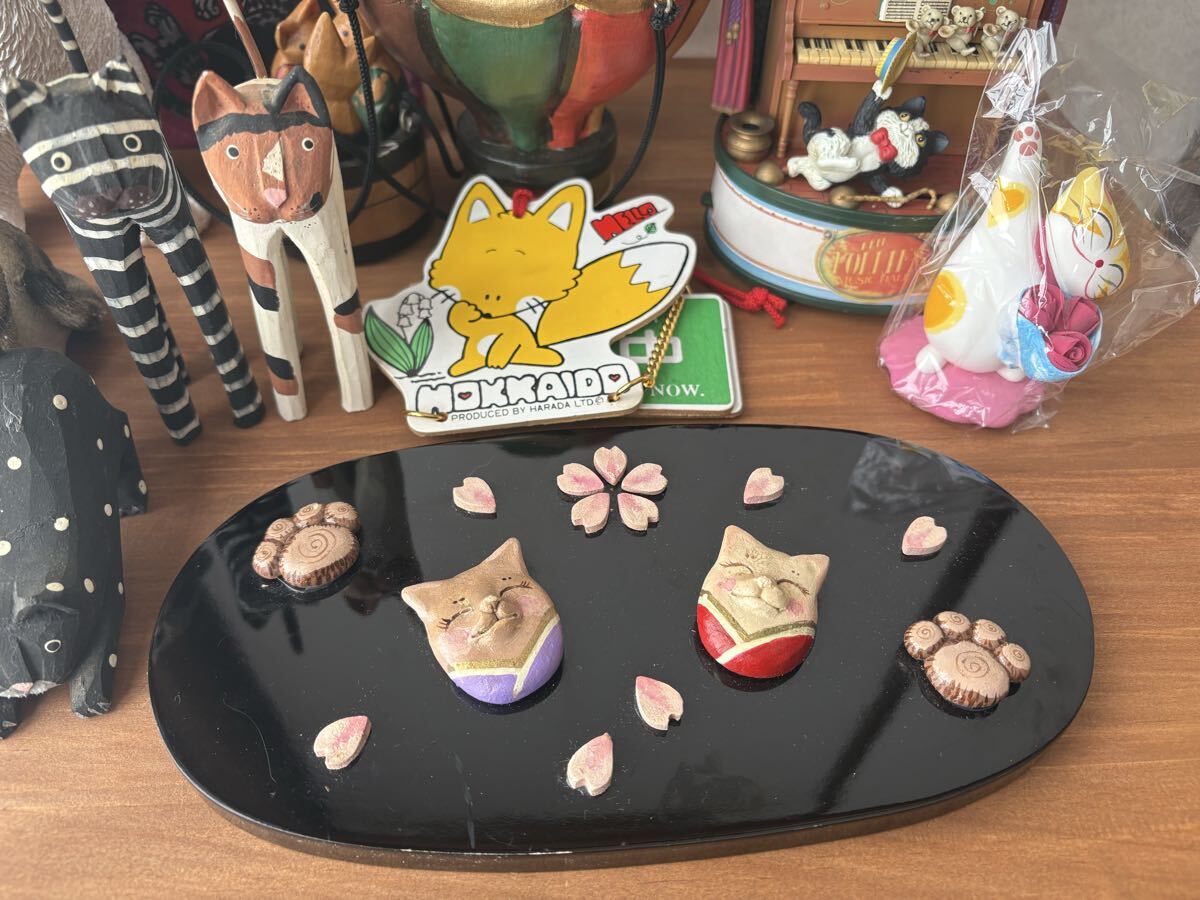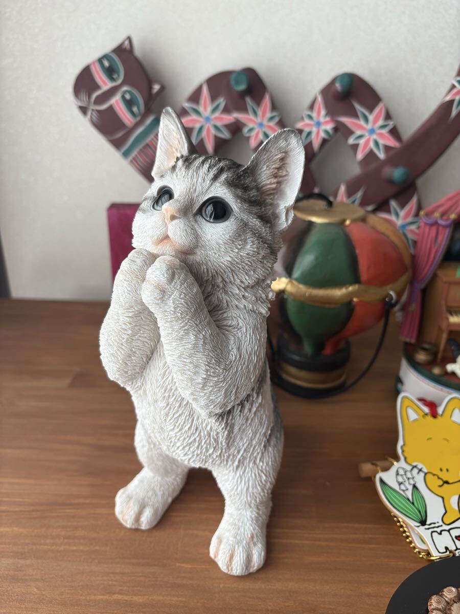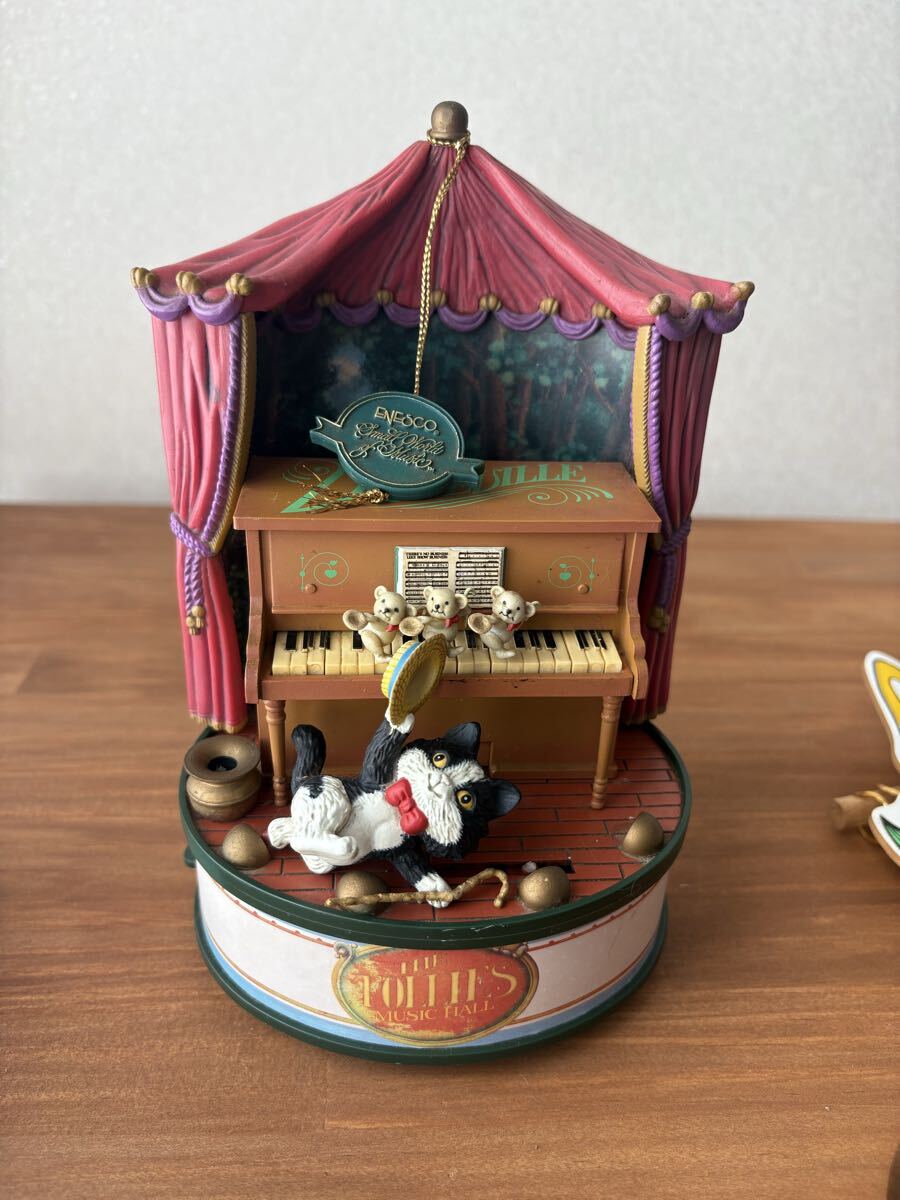エネスコのオルゴールは稼働しますが、猫の部分が折れています。接着剤などでくっつけて修理するといいと思います。