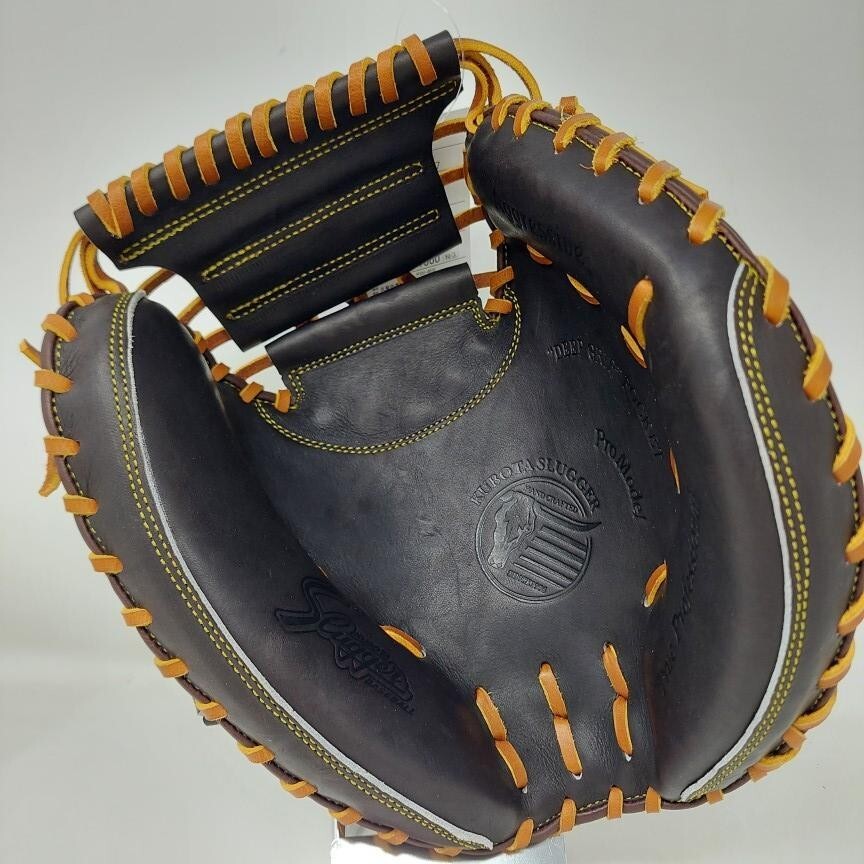 【ブランド名】久保田スラッガー 【商品名】硬式用キャッチャーミット 【品番】KCI 【素材】天然皮革 【本体カラー】バーガンディ×タン 【利き手】右投げ 【ポジション】捕手 新品未使用です。