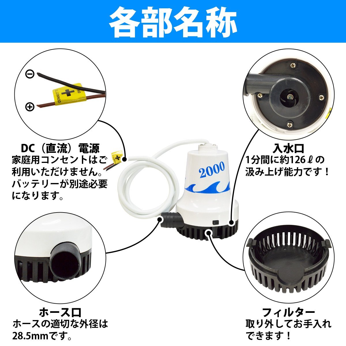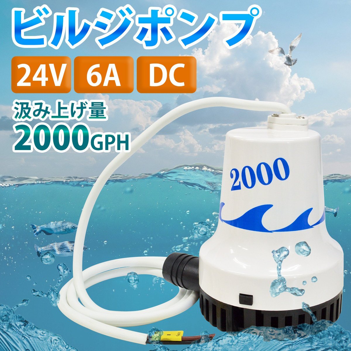 24V ビルジポンプ 2000GPH 海水 対応 毎分126L 水中ポンプ 船 ボート ヨット 船舶 雨水 浸水 排水 排水 汲み上げ ポンプ