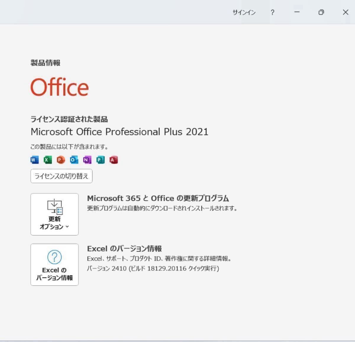 Microsoft Office Professional Plus 2021 インストール済み。ライセンス済みの製品なのでオフィスずーっと使えます。