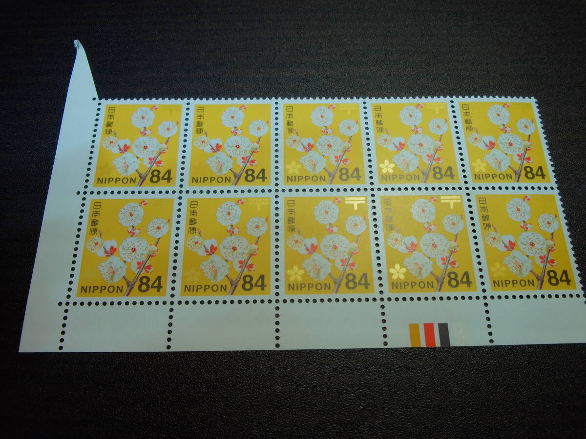 普通切手 84円 ウメ カラーマーク付き10枚ブロック   極美品