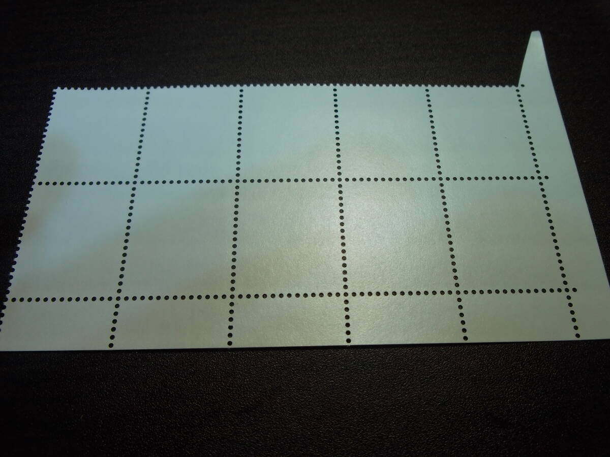 この頃の切手は丸まりやすいので目打ち離れ、折れをおこしやすいです。また、この頃の切手はグラビア印刷の特徴としてヒビ