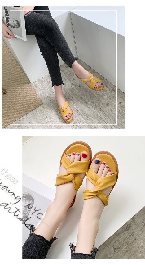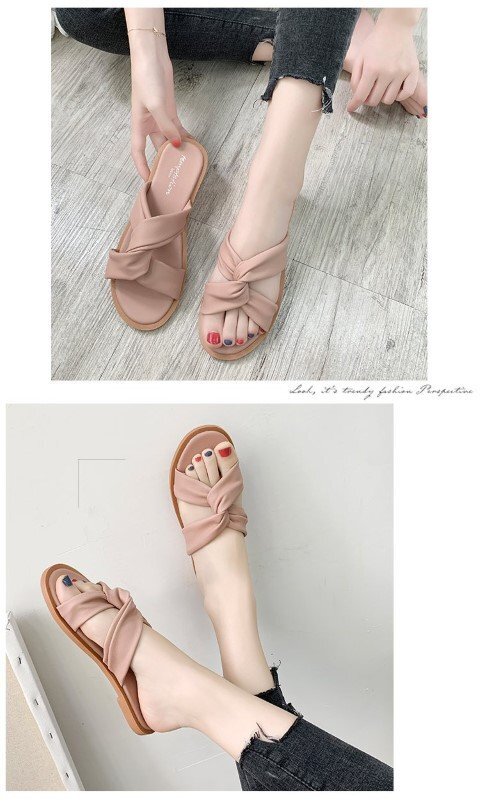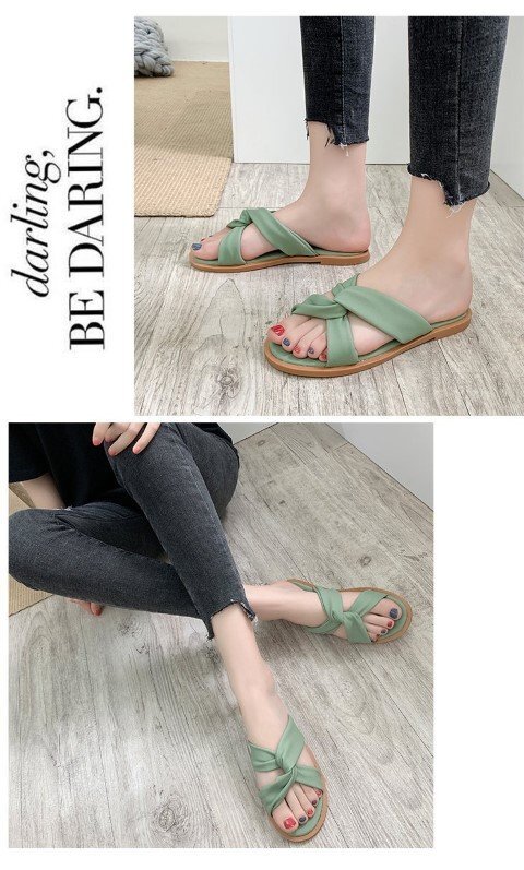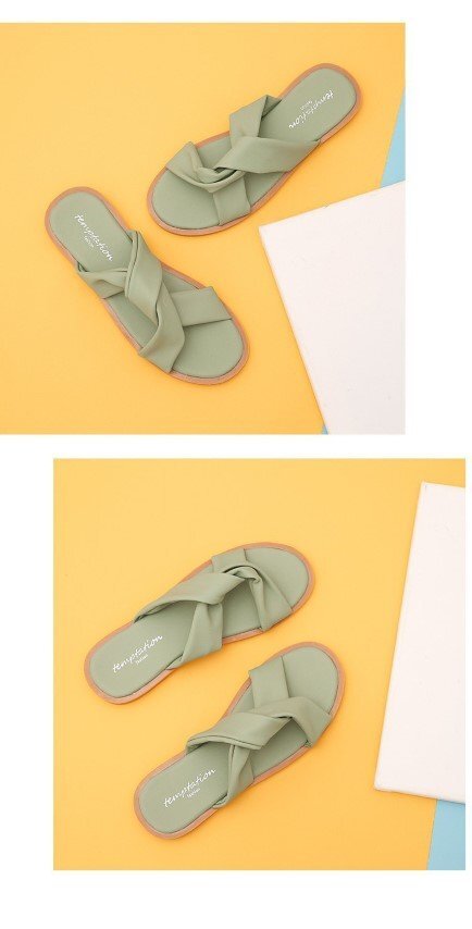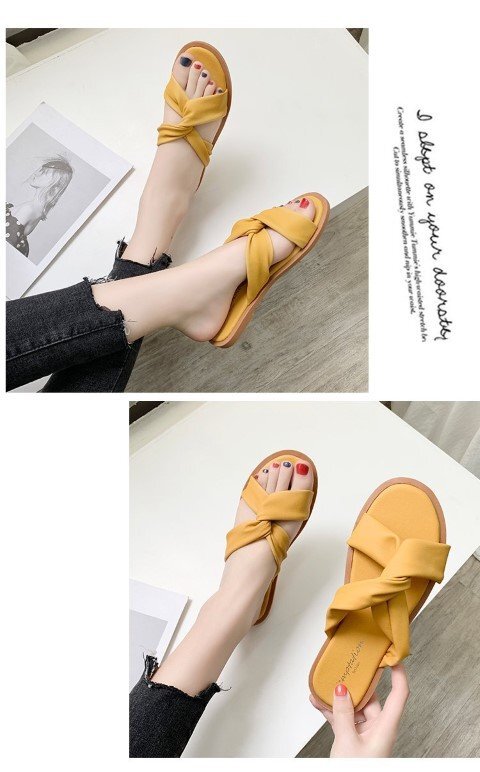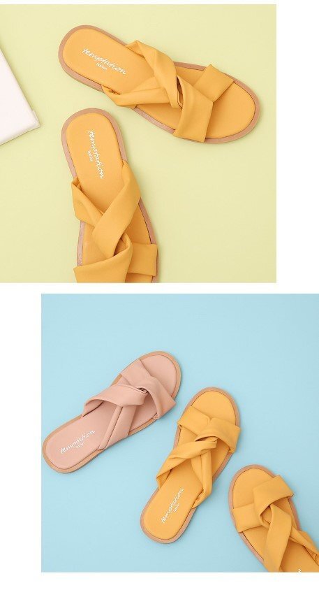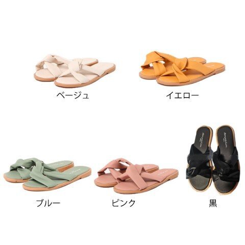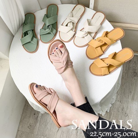 ・ポップなカラーがかわいいツイストデザインフラットサンダルです。