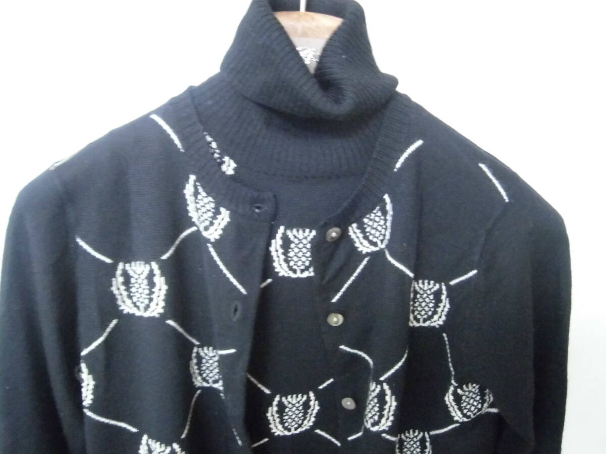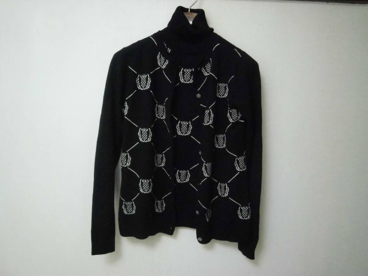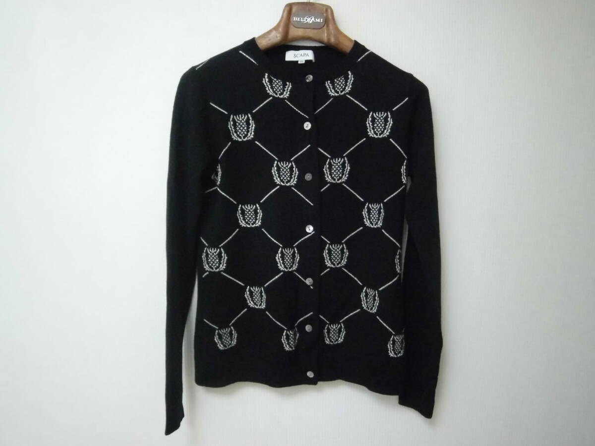 ★着用品の(スキャパ)の製品です。 ★色はブラック×アイボリー、素材はウール100%、サイズ表示は(38)、状態は良好です。 ★実寸は平置きで、タートルセーター:(肩幅34=袖回り含)(脇下身幅42)(着丈53)位、カーディガン:(肩幅33)(袖丈57)(脇下身幅42)(着丈56)位です。 ★印象的な模様編みの製品です。 |