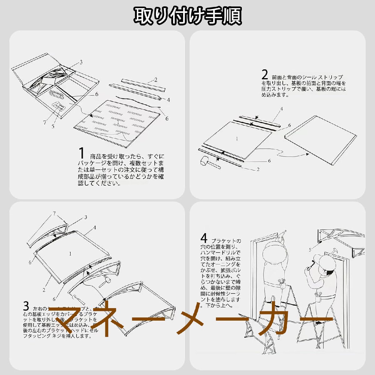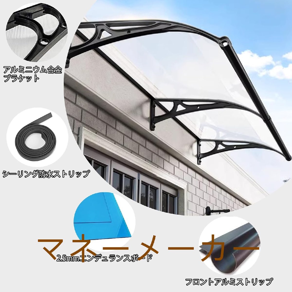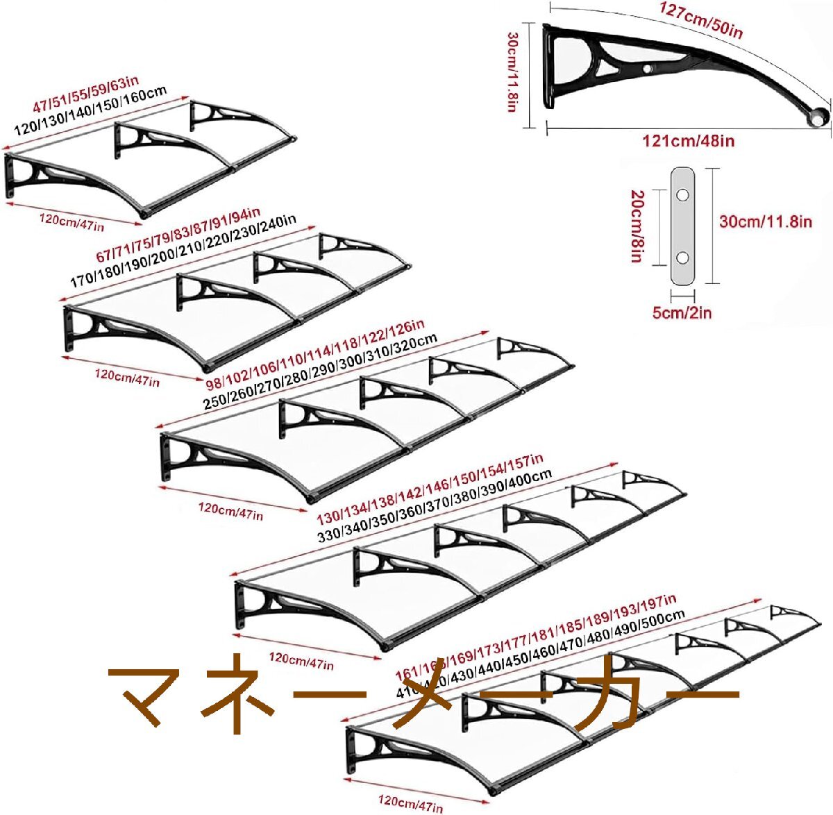 ひさし屋根 後付け, 玄関 雨よけ 庇 アルミブラケット付き 雨雪保護 無音 キャノピー 、パティオ日除け アルミブラケット 透明-120x200cm