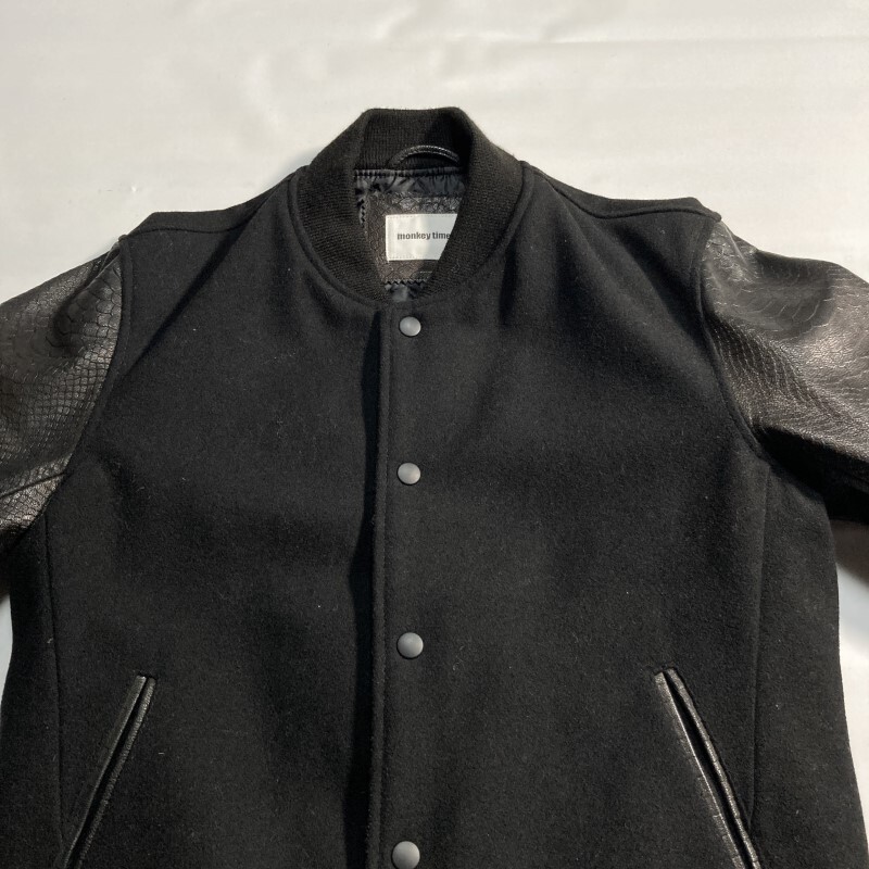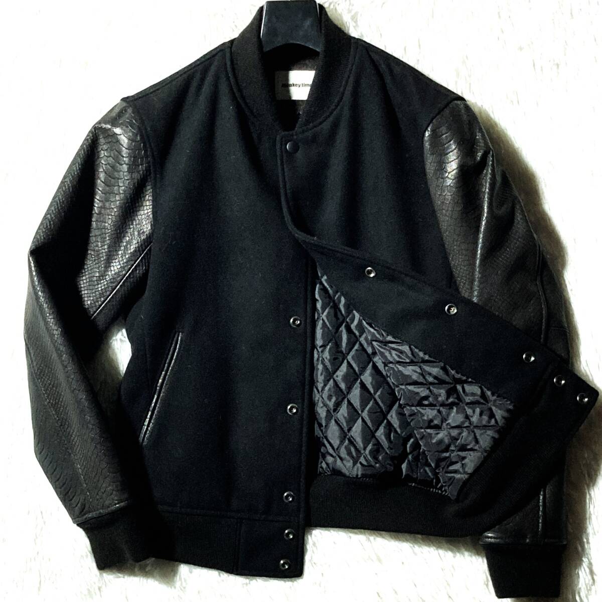 ユナイテッドアローズ monkey time★激レア&モード優雅★パイソン型押し やぎ革レザー スタジャン アワードジャケット 黒 M モンキータイム
