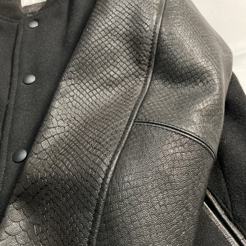 アワードジャケットのスポーティーさも残しつつも今年のトレンドを搭載しモードな面構えに仕上げました。
