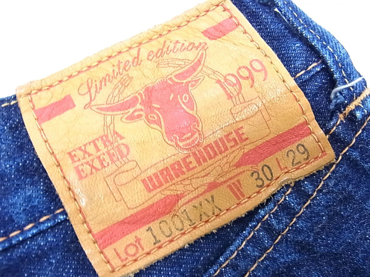 ☆WAREHOUSE ウエアハウス デニムパンツ 1001XX 1999年 LIMITED EDITION 日本製 デニム セルビッチ 色濃 水牛タグ ボタンフライ 赤耳
