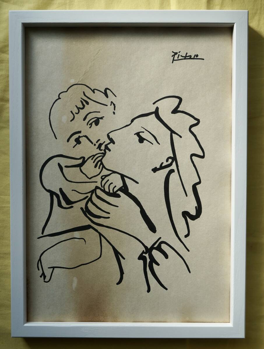 | 商品説明 | パブロ・ピカソのミクストメデイア(水彩、インク)/紙の肉筆原画です。1950年発表のリトグラフ作品「Maternal LoveまたはMother and Child(母の愛、母と子)」(写真参照)に向けて描いた原作の1つと思われます。右にサインが書かれています。ご覧のように左寄り縦にヤケがあります。版画のため左右がリトグラフの左右が反転しています。スペイン、マラガの老舗画廊「Royal Palace Gallery(王室宮殿画廊、1978年創立)」の証明書があり、作品は真作であることを示しています。 制作年:1950年頃 サイズ:約21 x 30cm 額縁:新品、約32 x 23cm、UVカットアクリル付き <注意事項>**必ずお読みください。下記の事項に同意された方のみ入札してください。** |